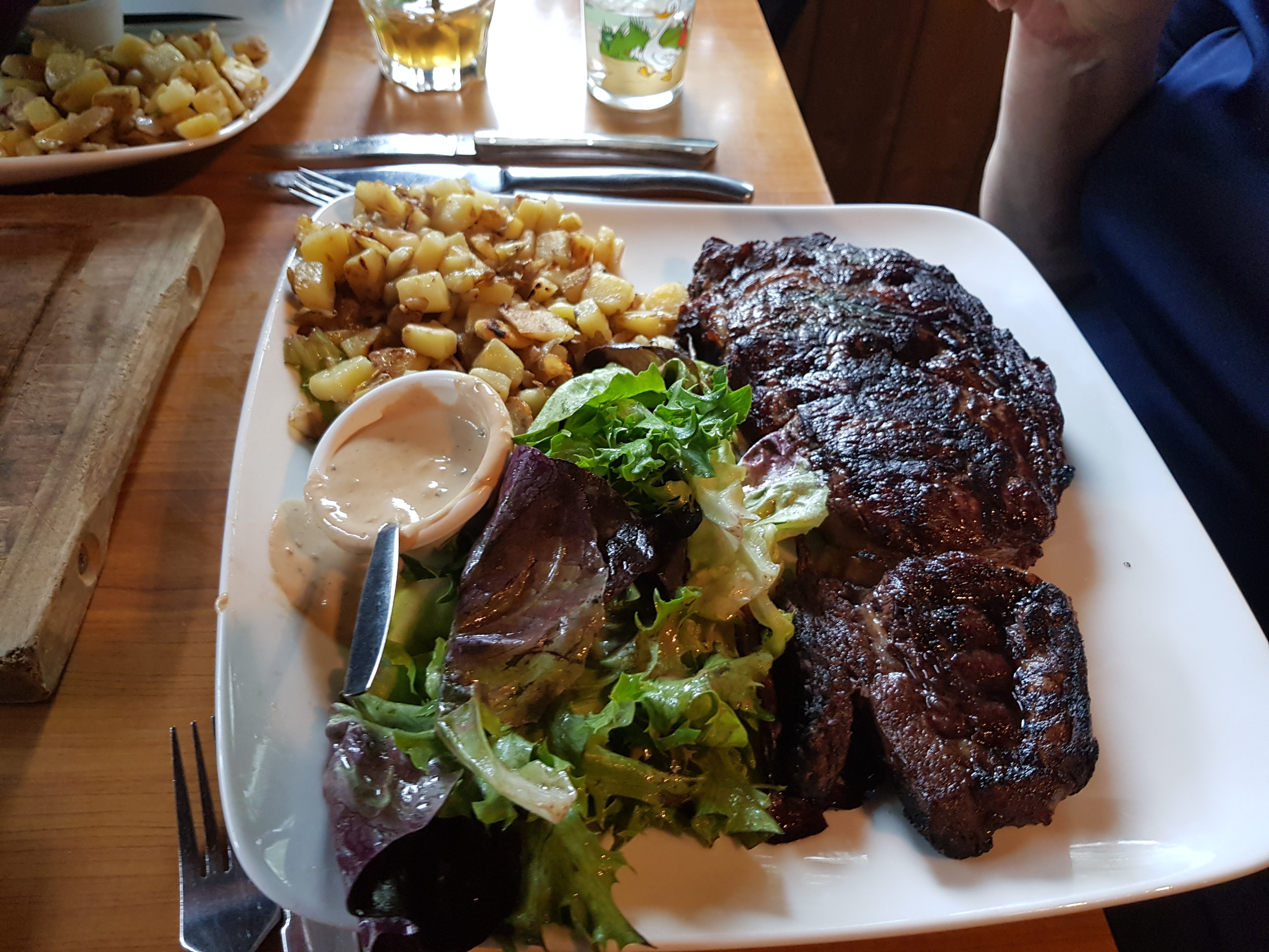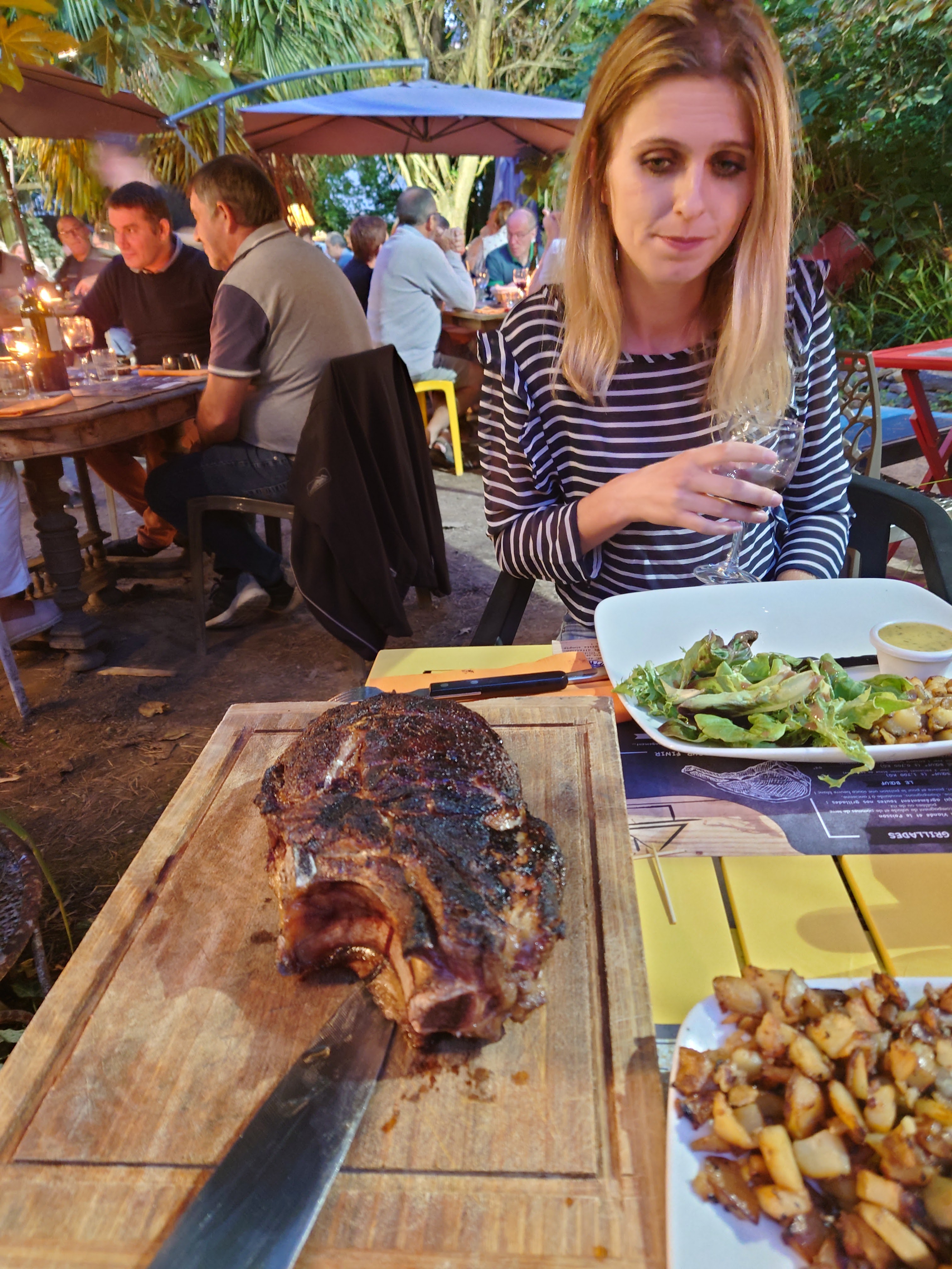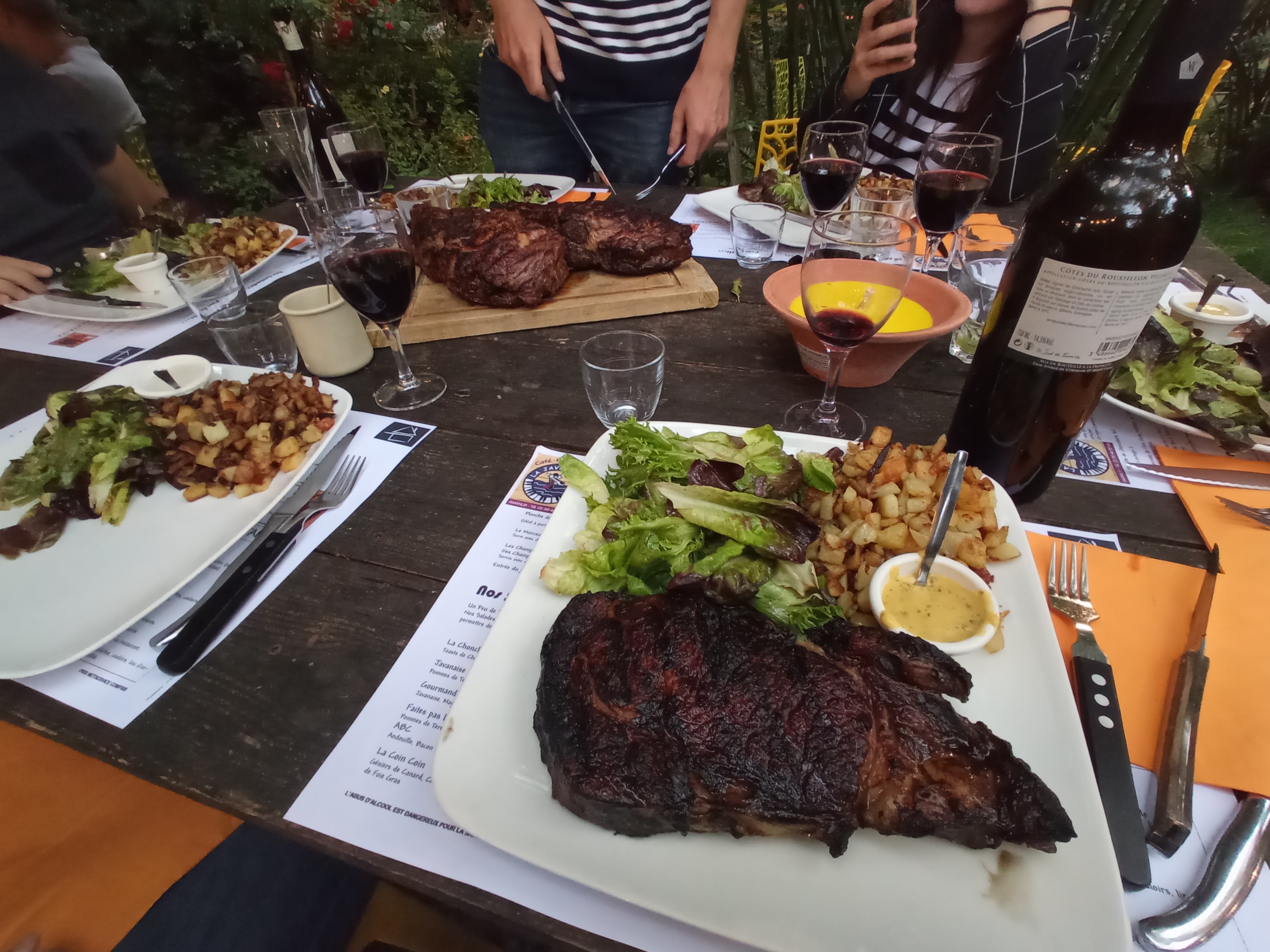 Posté le 04/08/2019 à 08:00"On y mange vraiment très bien j'ai pris une entrecôte le 450 grammes la cuisson était parfaite et ce qui se fait rare c'était de la race à viande et ma femme a pris une salade et c'était très bien et très copieux j'ai mis 3 étoiles par rapport à la décoration surtout à l'extérieur il y a plein de choses qui traînent je ne pense pas que ce soit de la déco d'avoir une table en bois de casser des pots de bougie qui traînent dans le fond de la cour et des fond de bouteille en plastique bizarre et c'est vraiment dommage mais par contre je le répète ce que vous avez dans l'assiette c'est super"
