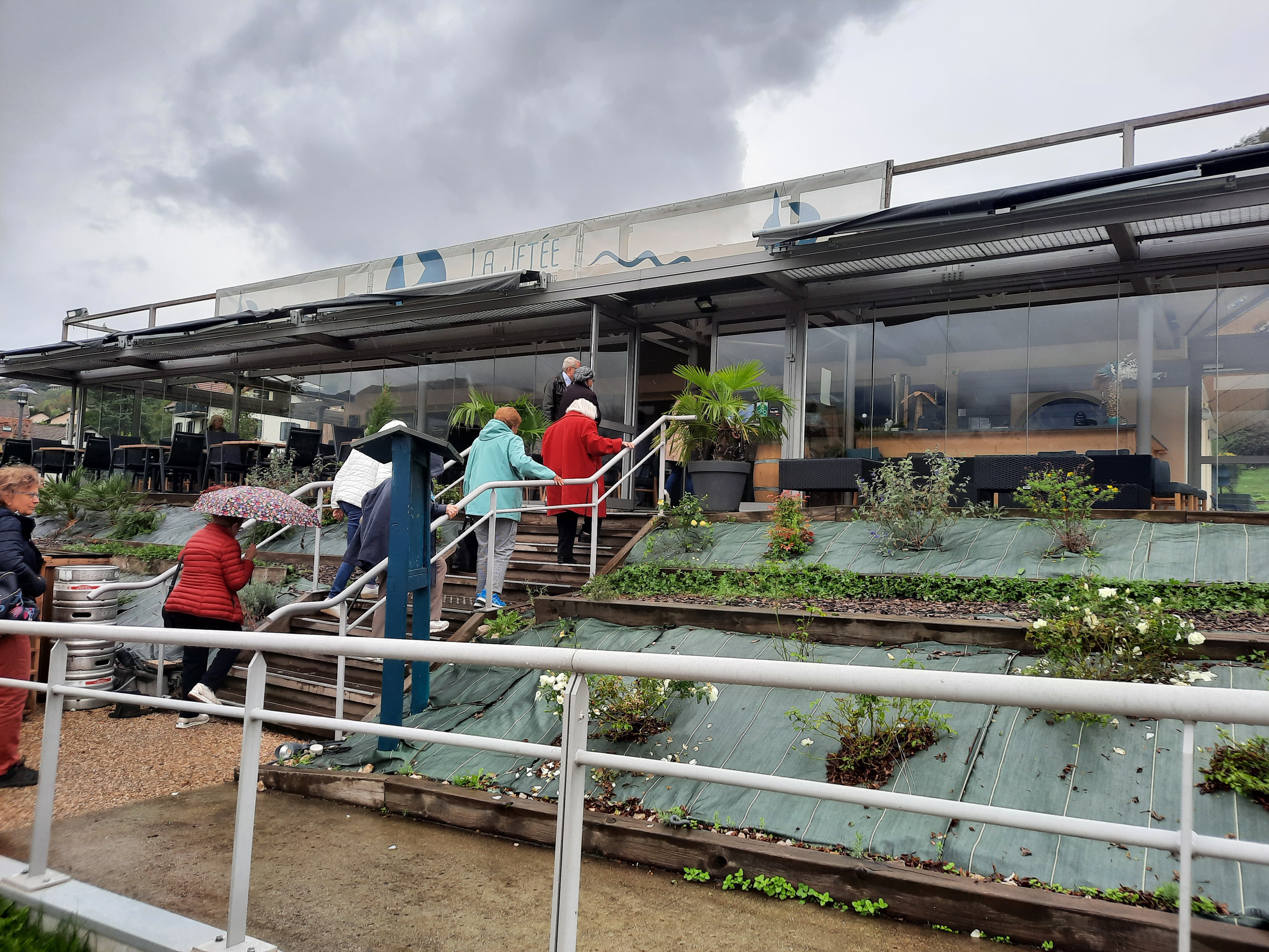 Posté le 15/07/2020 à 18:12"La jetée. Quel beau nom pour un bar restaurant que je vais jeter au plus profond du lac. On a attendu plus de 40 minutes pour boire un verre sur une jolie petite table avec de beaux relax Bud avec une très belle vue sur lac et montagne, magnifique. Par contre pour le service zéro, 3 serveuses différentes sont passées à moins de 5 mètres de nous mais rien on attendrait encore à l'heure ou j'écris. A oublier alors qu'il n'y avait que 2 tables avec des clients"