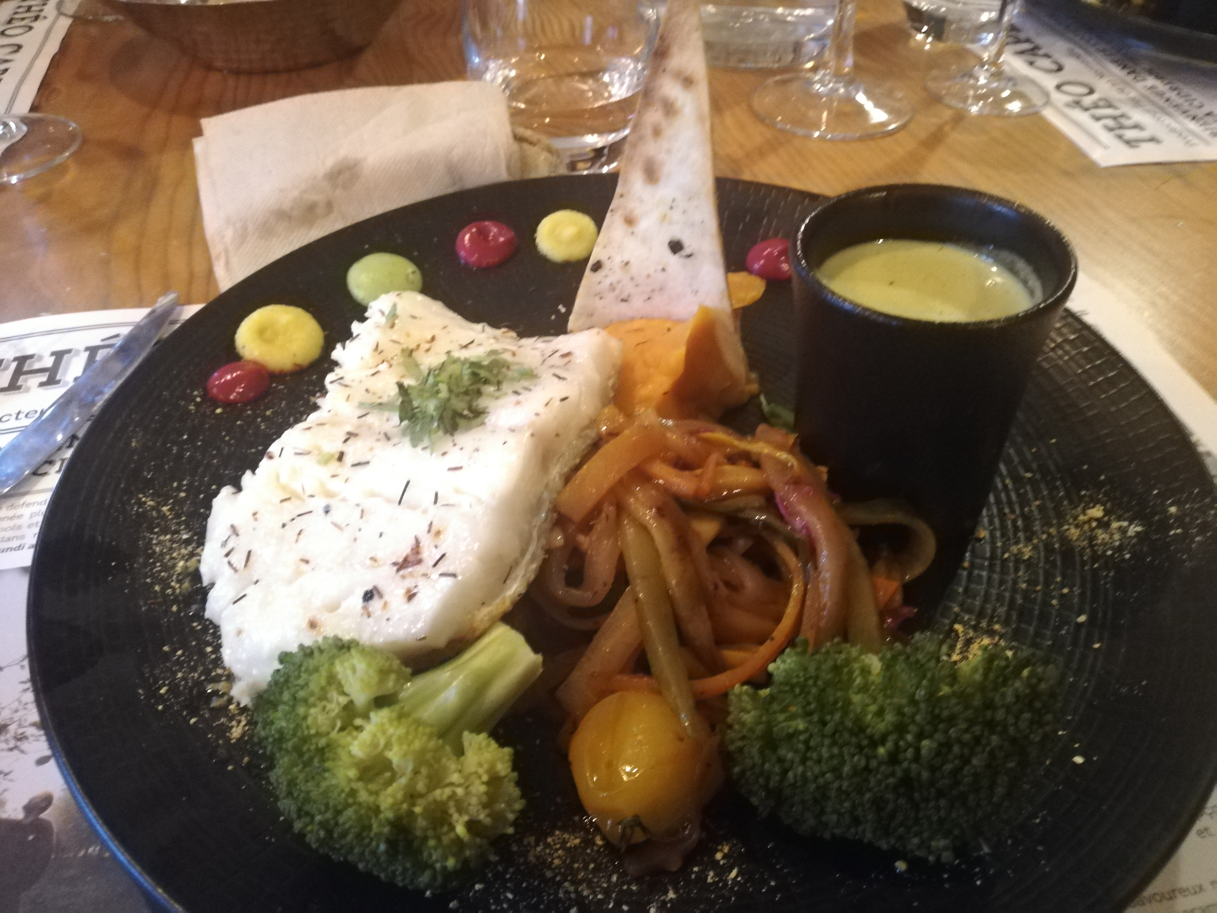 Posté le 05/08/2024 à 17:45"Une super adresse! J'ai beaucoup aimé le concept de pouvoir goûter plusieurs plats (il y a une formule découverte duo et une trio qui permettent de choisir 2 parmi 3 ou les 3 plats sur l'ardoise) et le goût !!! C'était vraiment excellent. Des saveurs différentes et pourtant pas piquantes (je déteste quand ça arrache, genre le piment !!!), une cuisson parfaite... C'est une petite salle donc il faut réserver, mais vraiment, allez-y, vous ne regretterez pas! Perso, il fait partie de mon top 3 des restau. Je n'avais jamais mangé quelque chose d'aussi bon, fin et délicat, à part à Lyon au restaurant Les canuts et les Gones où c'était aussi une découverte exceptionnelle. De plus, très bon rapport qualité-prix et toute l'équipe est sympa. C'est bête, j'ai pas pris de photos des plats, mais c'était beau en plus..."