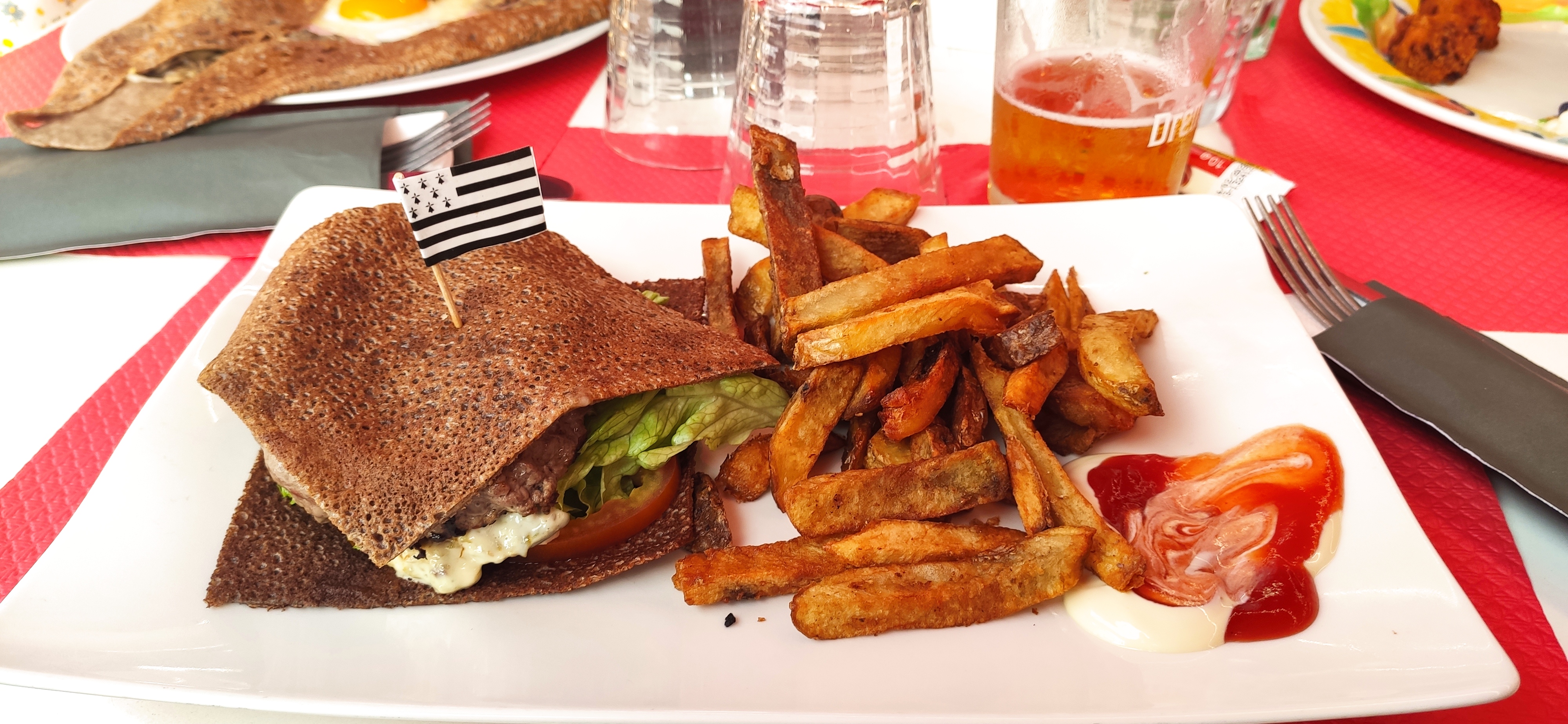 Accueil sympathique, galette la Breizh burger. Vraiment très bonne, burger avec galettes au lieu du pain. En dessert un café gourmand qui est bon aussi.