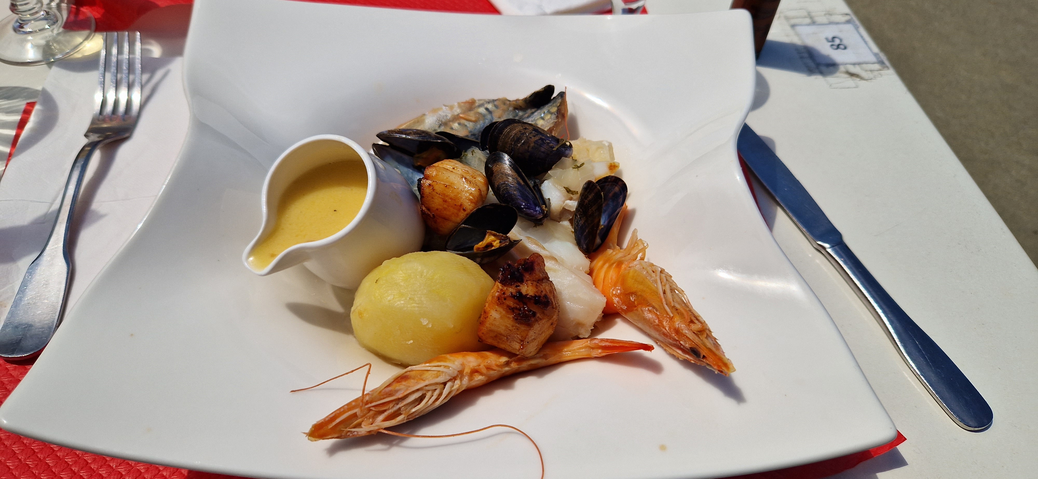 Posté le 21/08/2024 à 13:27"Je pense qu’il était débordé, donc le service a été long / imprécis, mais les assiettes sont cohérentes avec les prix, vue sur le port, un bon resto de station balnéaire"