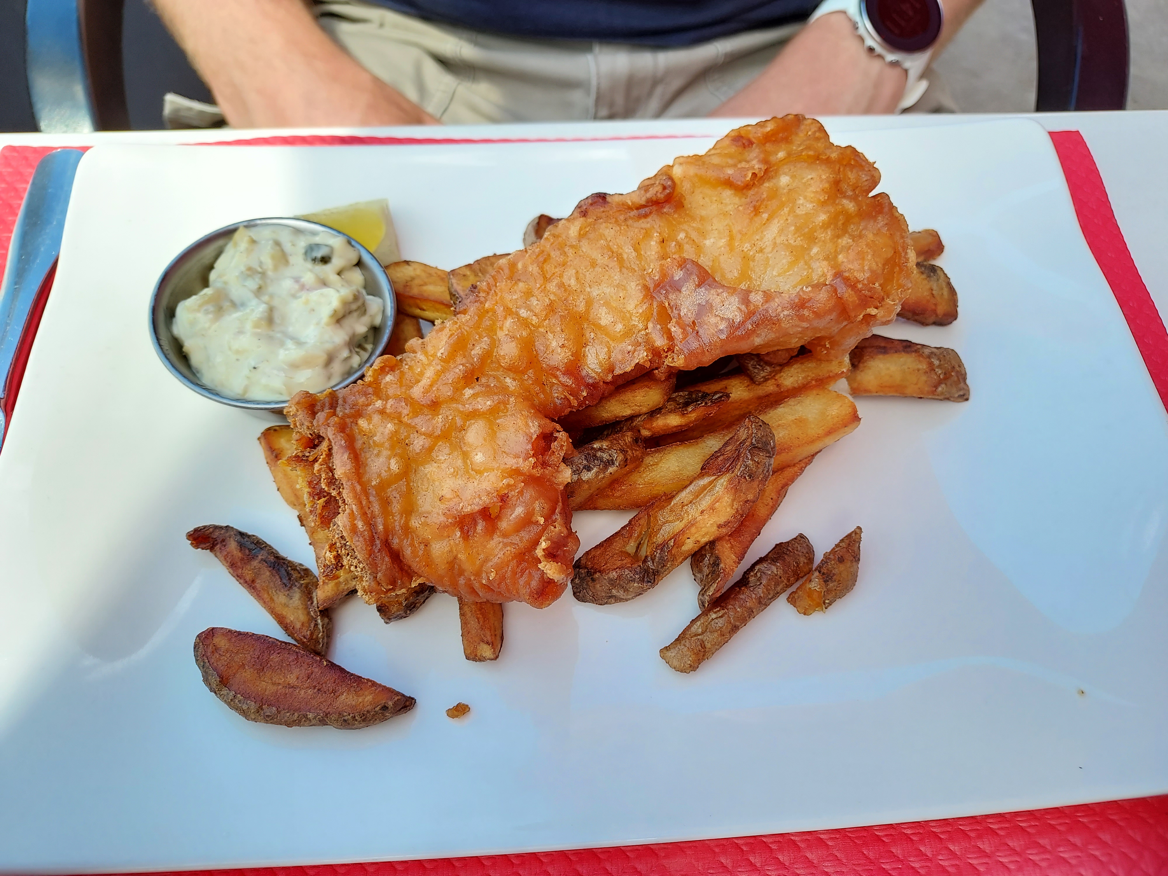 Un déjeuner à La Marina qui était parfait , à base de produits locaux avec un Fisch and chips qui était excellent et un personnel extra . Merci pour tout , je recommande