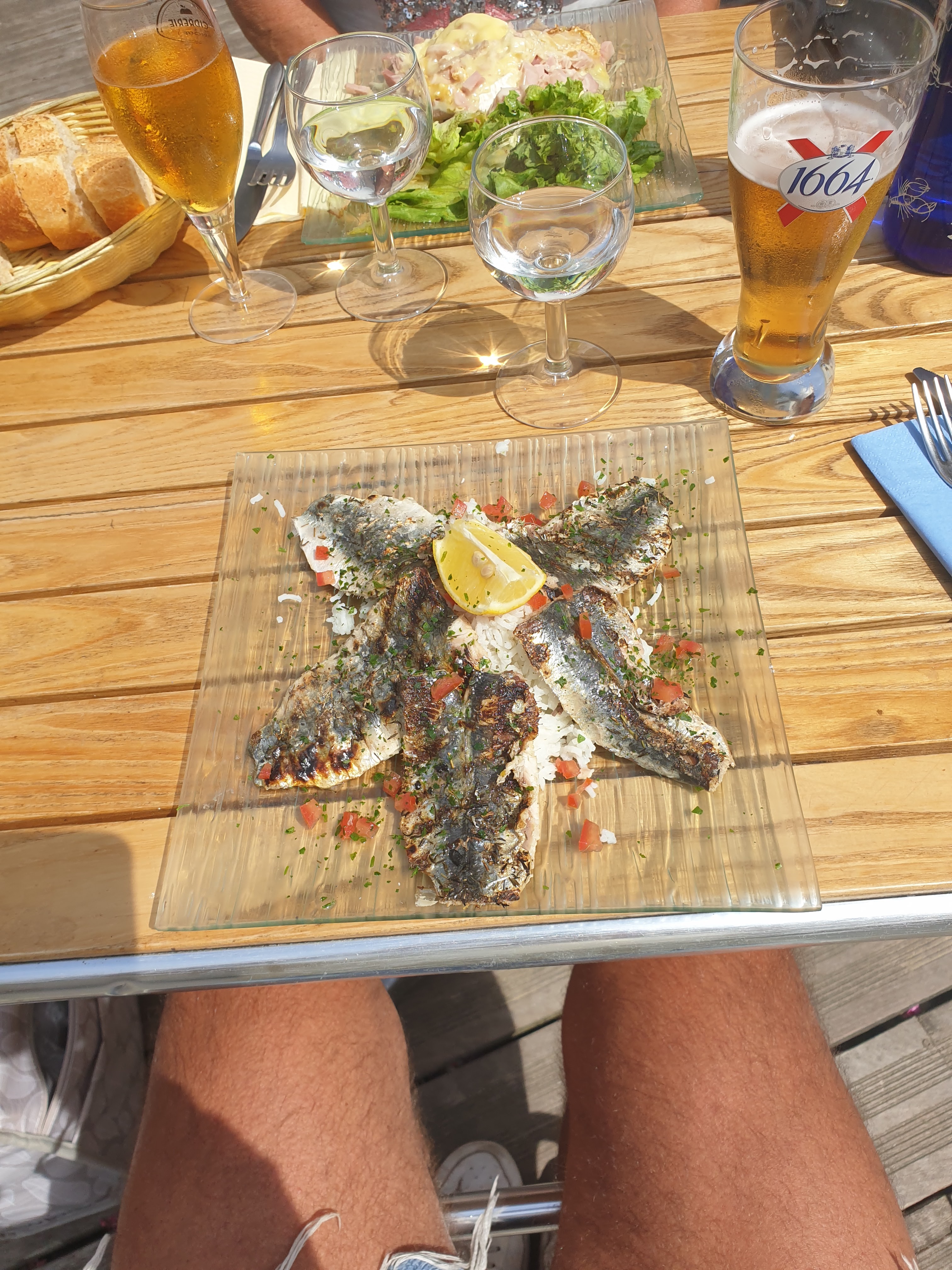 Petite brasserie conviviale où les clients de toutes origines qui ne se connaissent pas se saluent gaiement voir discutent entre eux. Le patron, qui assure le service, vous fait bon accueil, toujours un petit mot sympathique. Tout n'est pas forcément frais (il m'a semblé en tout cas, je n'ai pas demandé) mais c'est cuisiné sur place et le goût est là. La crêpe en dessert est accompagnée d'une boule de glace et de la chantilly, cependant la crèpe chocolat était en fait Nutella. C'est somme toute un bon rapport qualité prix à 50m de la mer, adresse à laquelle je pourrais retourner Réservation recommandée.