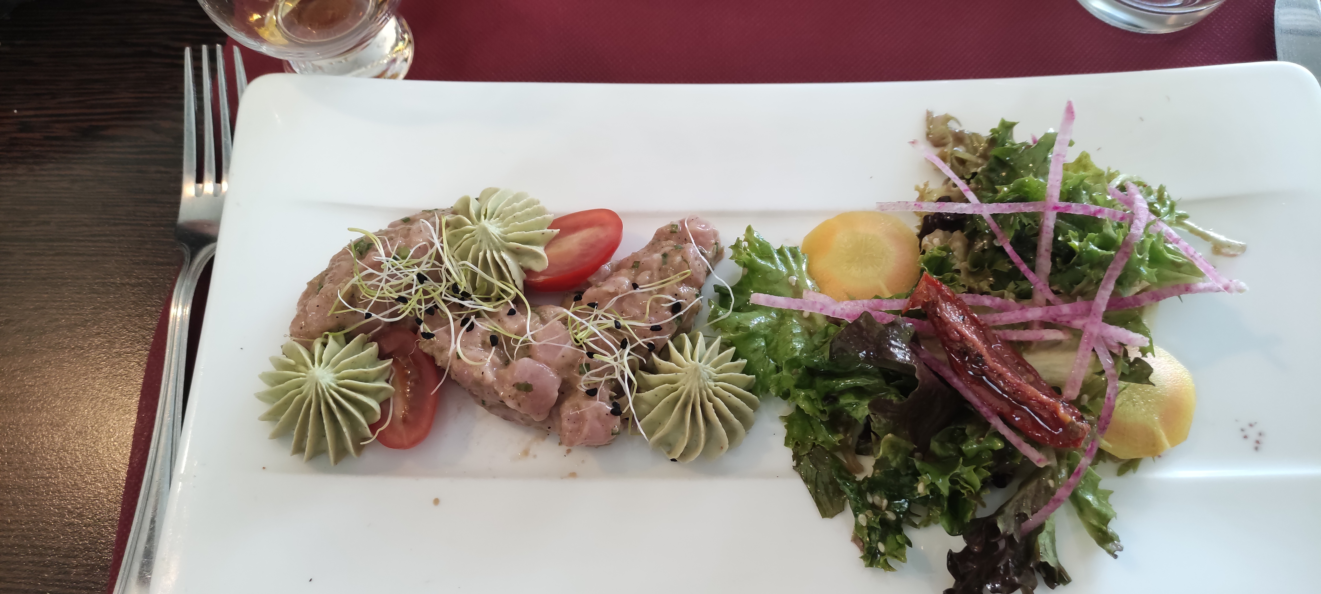 Un restaurant à la hauteur de nos attentes, des plats excellents jusqu'au dessert et très exotiques, un service également très agréable, les plats manquaient légèrement de volumes mais cela restait très correct, un très bon restaurant à aller avec ses collègues !! Je recommande.