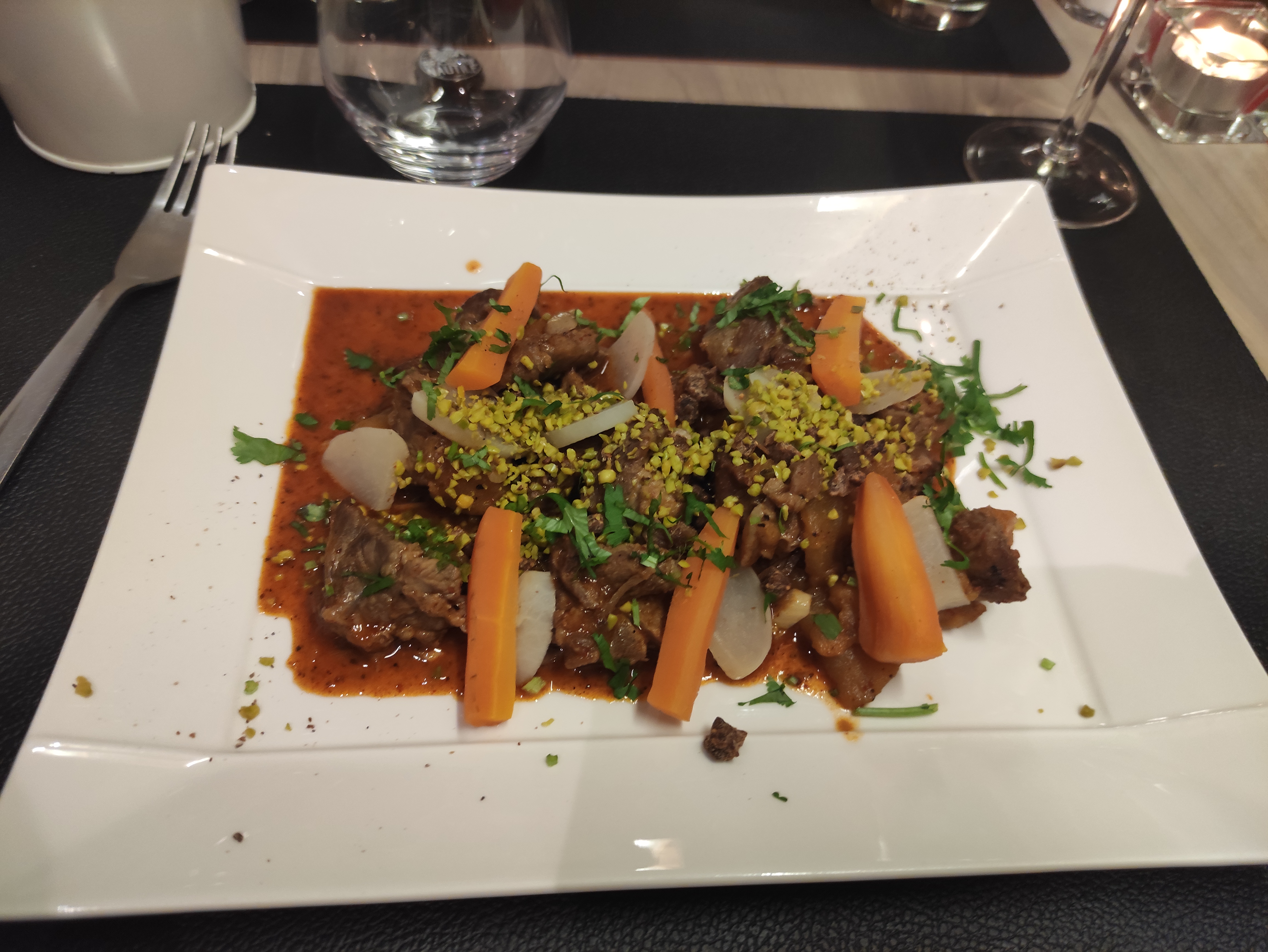 J'ai adoré le plat et le dessert, beaucoup de mélanges de saveurs