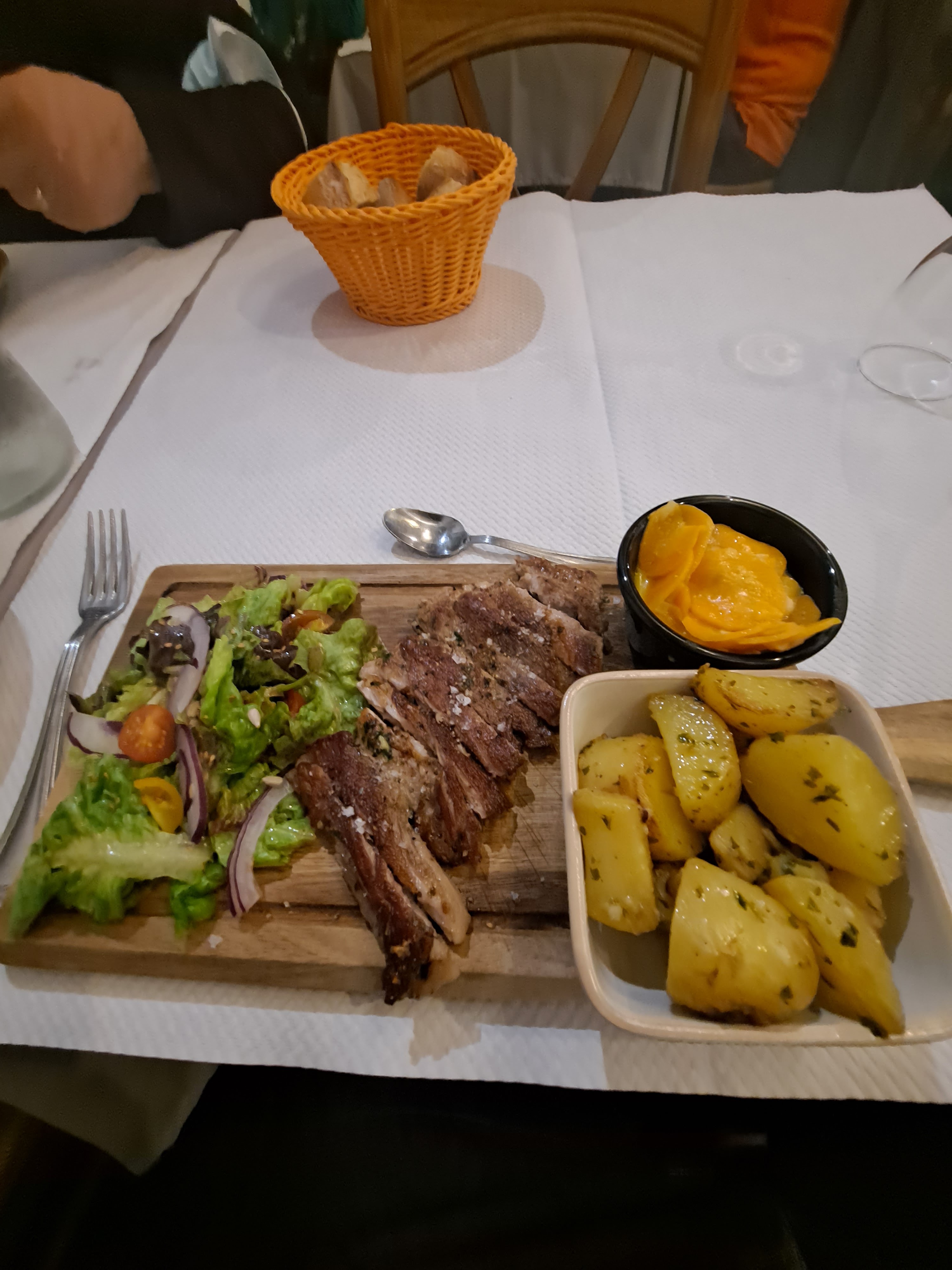 L'entrée était très généreuse et la cuisse de canard excellente. Une ambiance conviviale, on voit que le personnel fait de son mieux pour être arrangeant et satisfaire sa clientèle. Merci !