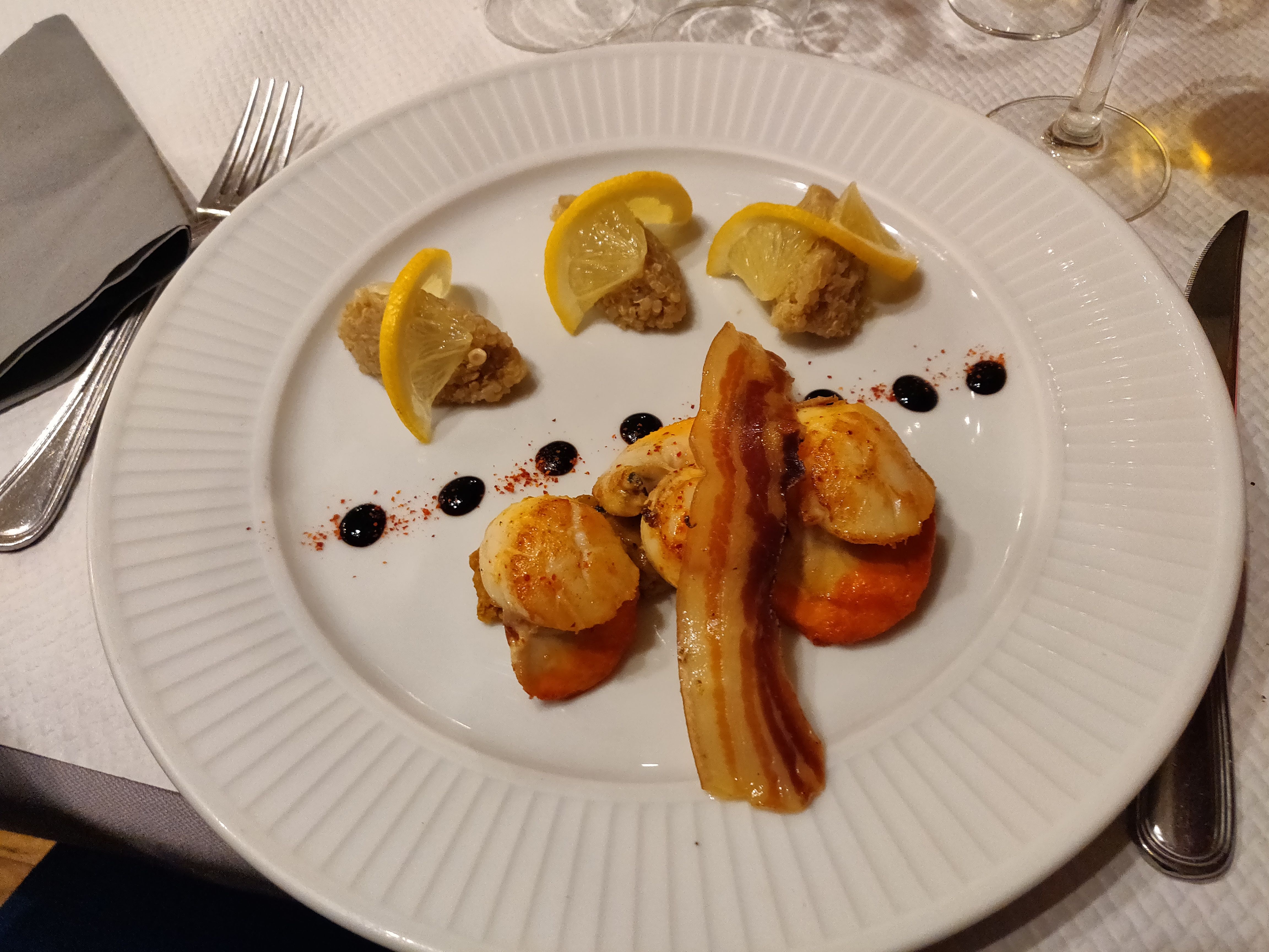 Service et plats de qualité ! Les gambas étaient incroyables et le dessert « dôme aux mirabelles » était frais et léger pour finir ce repas. Nous avons aussi apprécié les petits amuse-bouches offerts pour l’apéritif.