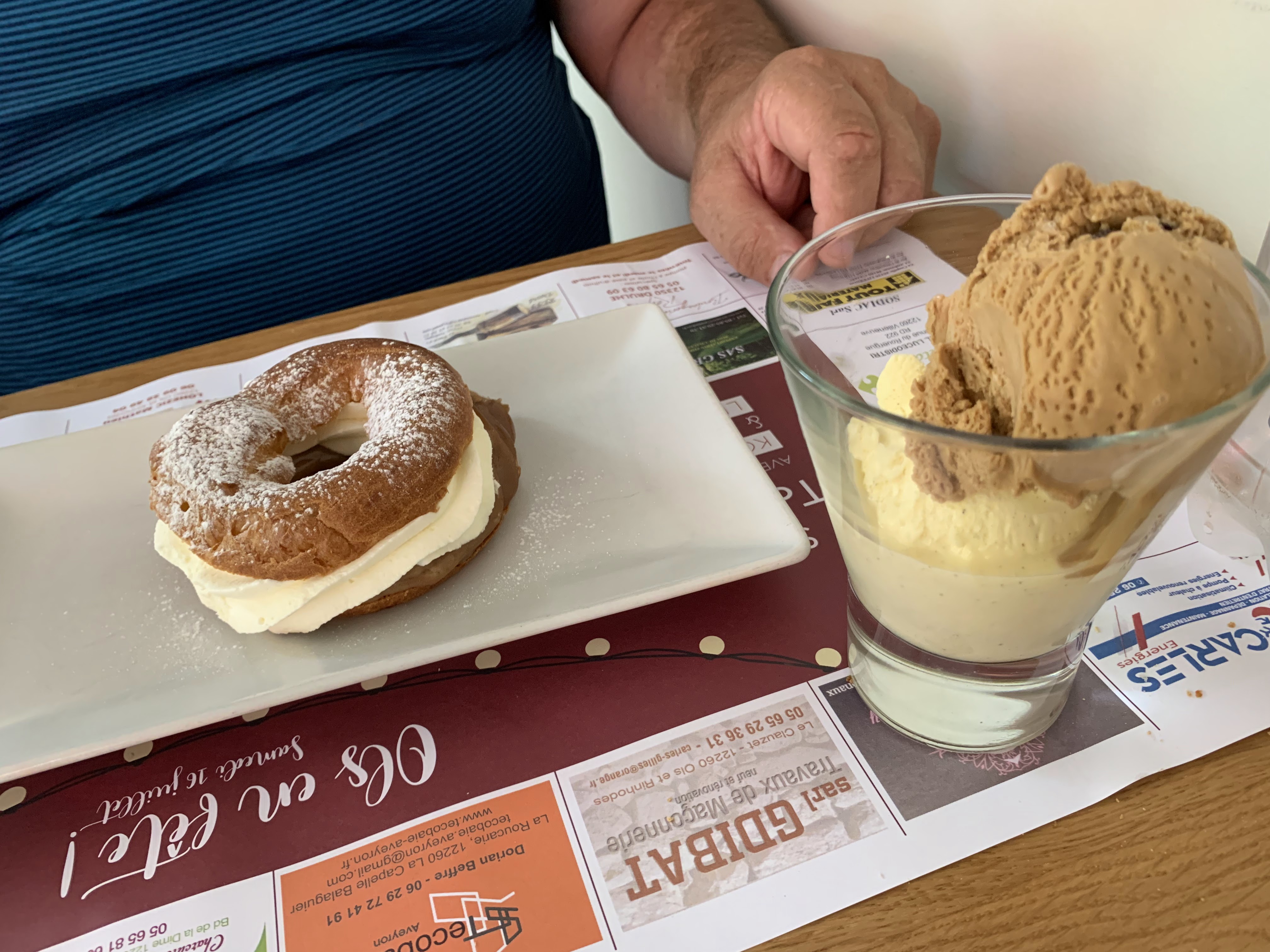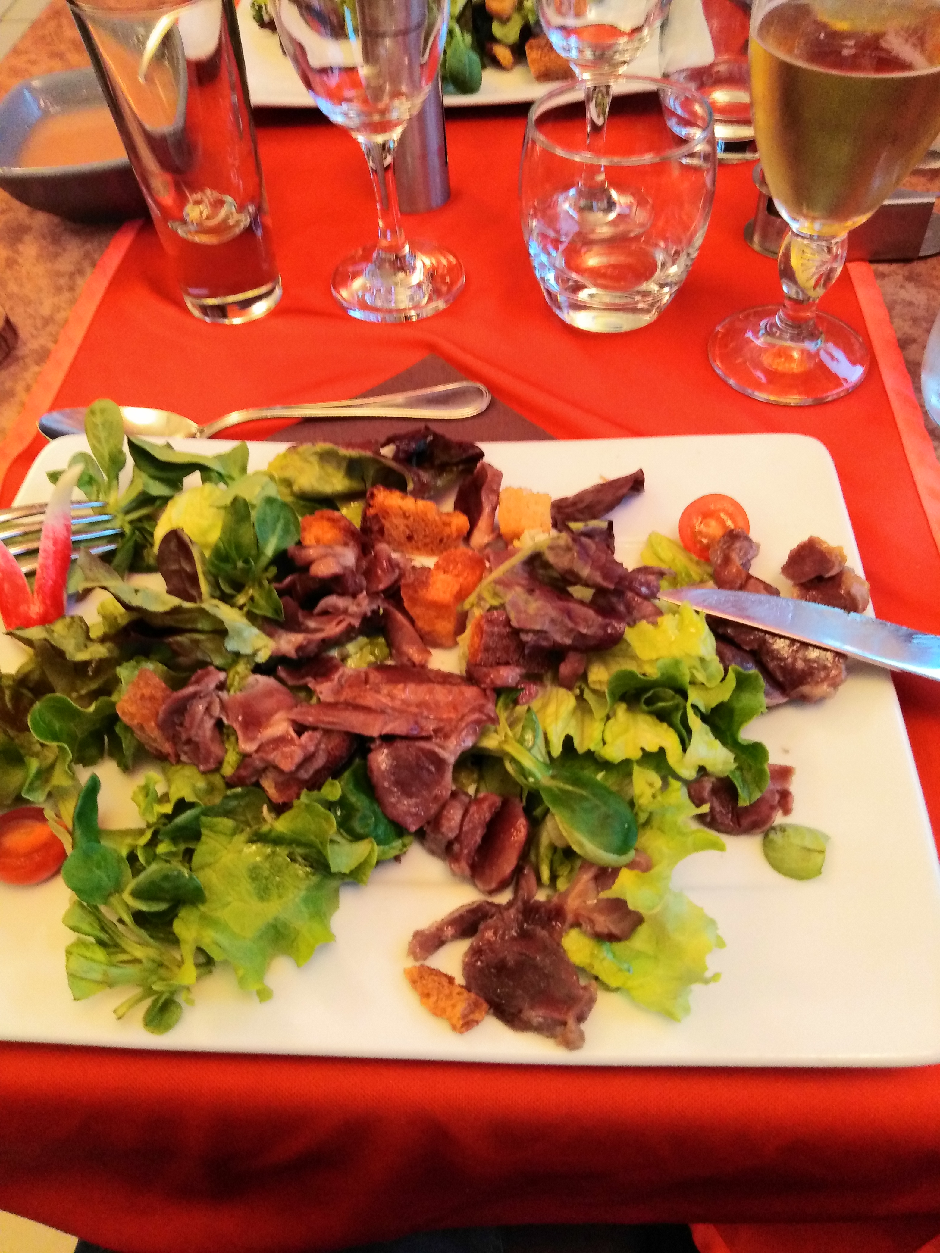 Les entrées (la salade de gésiers était très bonne) étaient copieuses et les plats étaient copieux et très bon. Frites maison très bonnes. Dessert copieux, délicieux et rafraîchissant avec la chaleur. Le personnel était très sympa et chaleureux !! 🙂 PS : la climatisation par cette chaleur ça fait du bien 😃👍