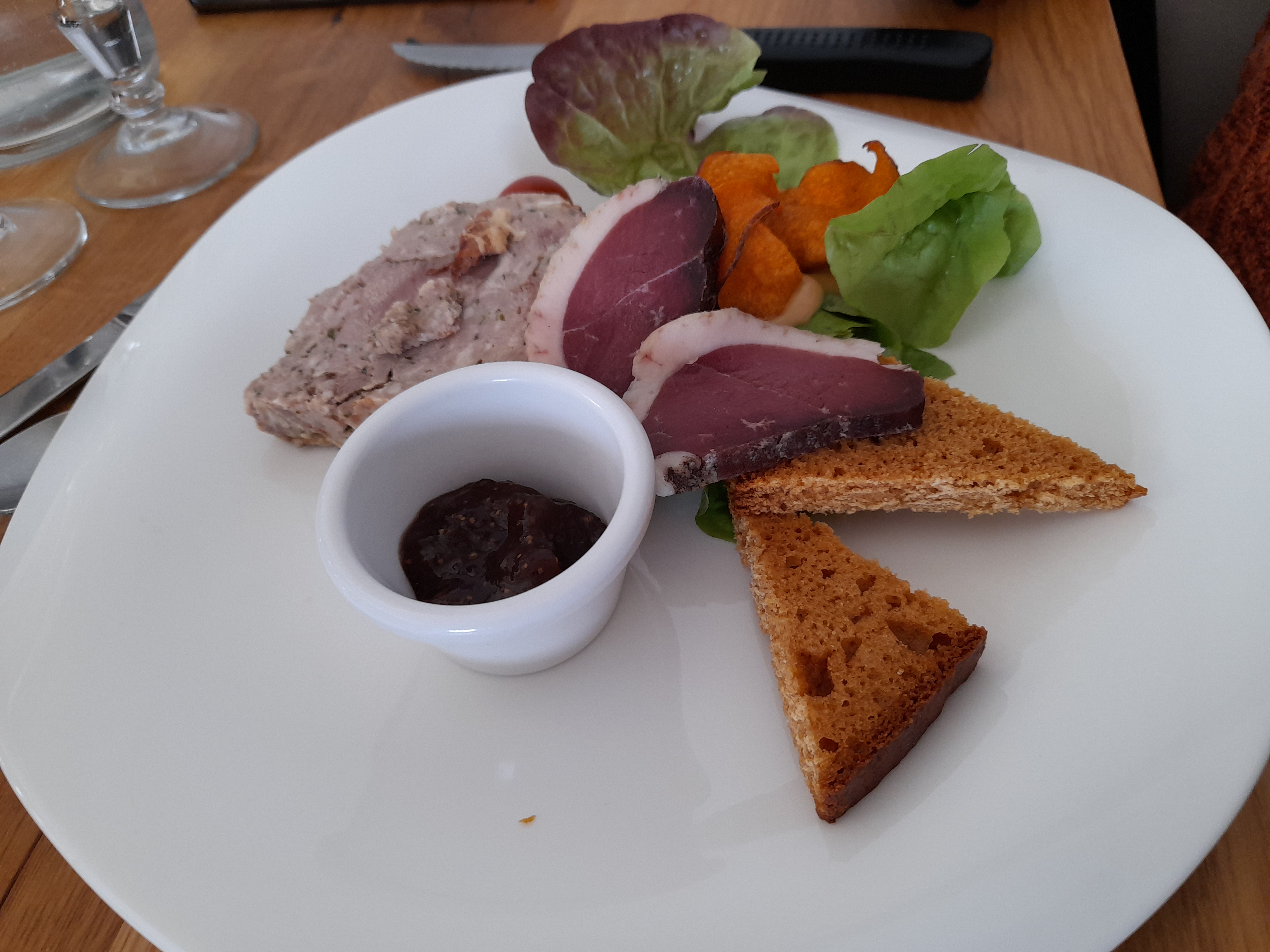 Des produits locaux très bien cuisinés et servis. Belle salade avec toutes les variations autour du canard, confit frais et croustillant et chou choco. 😋 Excellent rapport qualité / quantité / prix !!