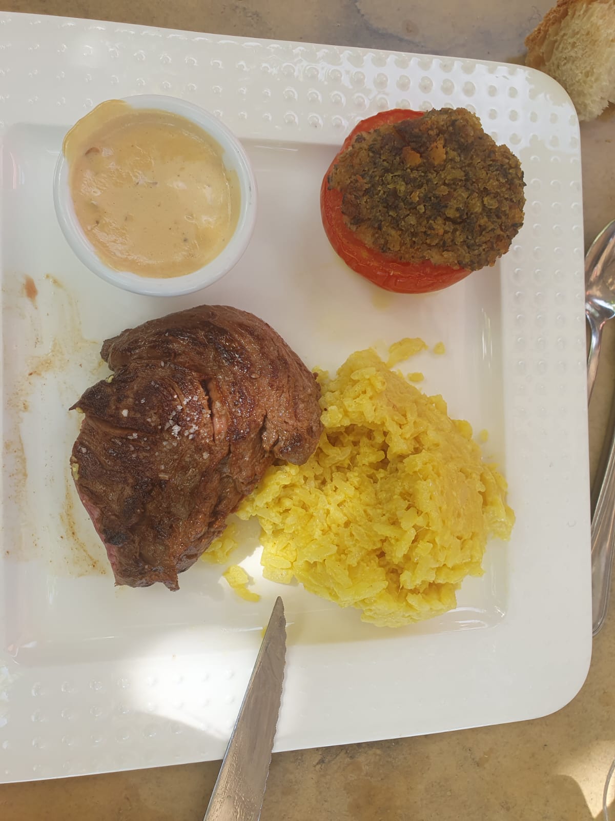 Parfait je recommande. Un fratin patate douce et pommes de terre à tomber. Service au top et patronne qui fait tout pour que le repas ce passe bien😊