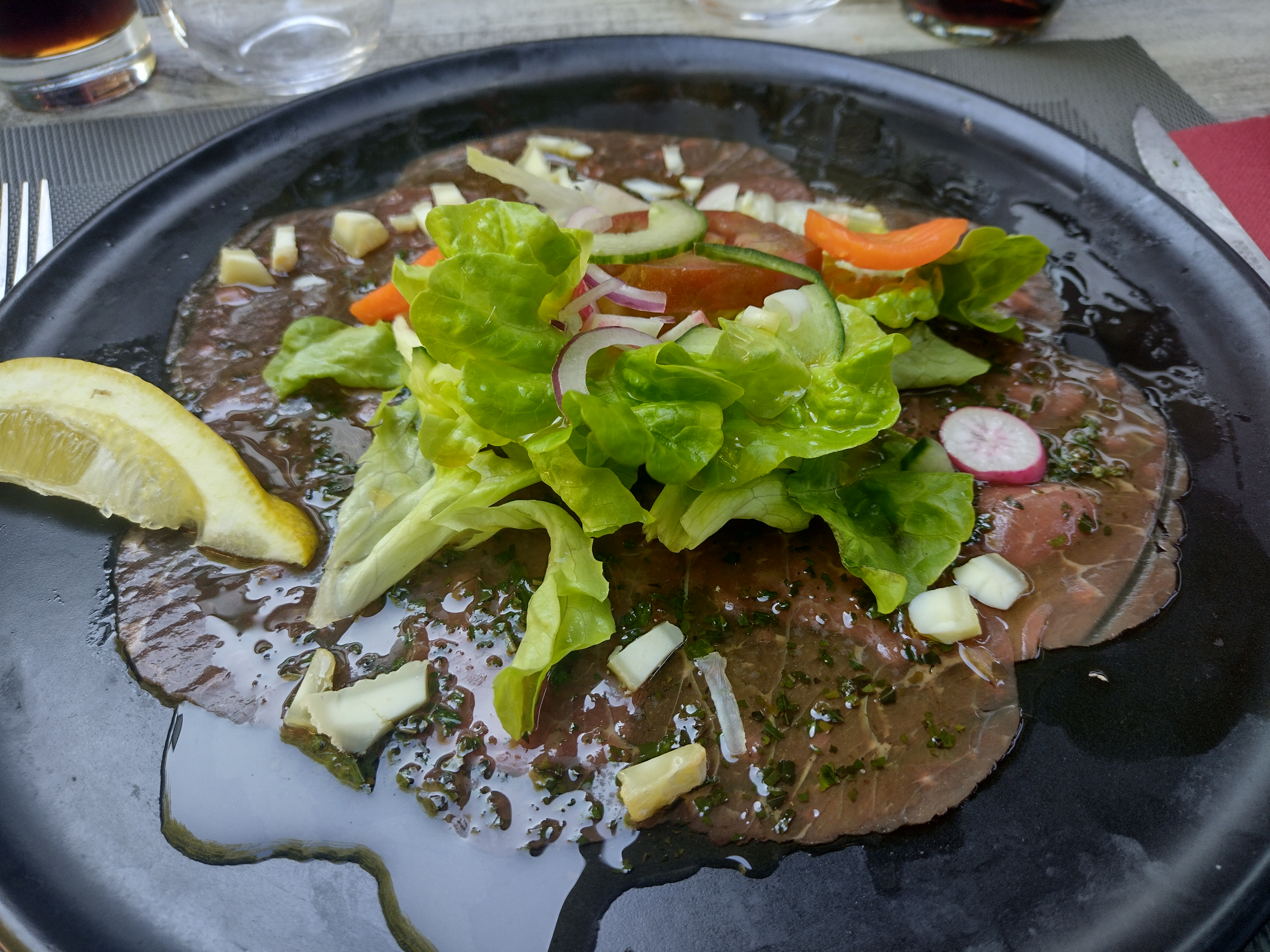 Petit restaurant sympa. Les plats sont de qualités. J'ai enlevé une étoile sur l'ambiance car le passage des voitures sur la route gache un peu la tranquillité. La ville est très jolie.