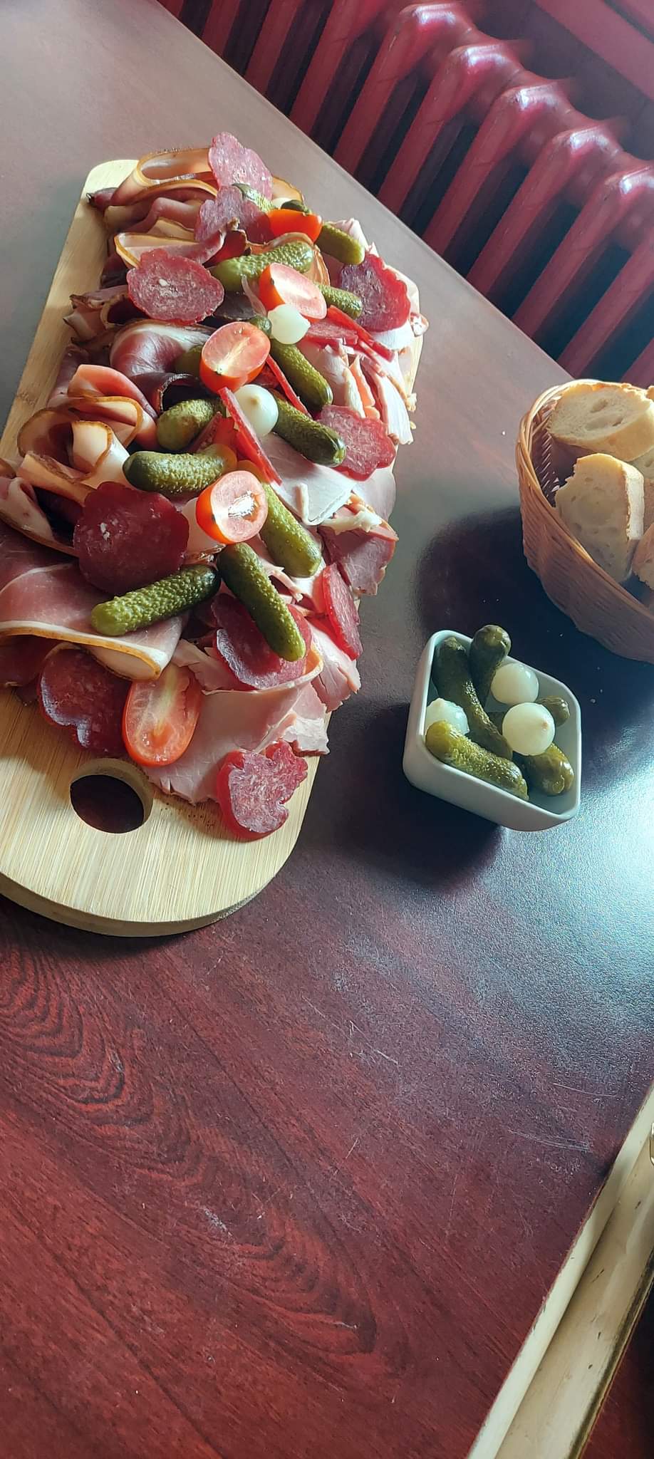Bon repas dommage que la viande ne provienne d'Allemagne et que le chauffage soit arrêté . Les toilettes mériterait un bon rafraîchissement ,vétuste, exiguëe et limite propre.