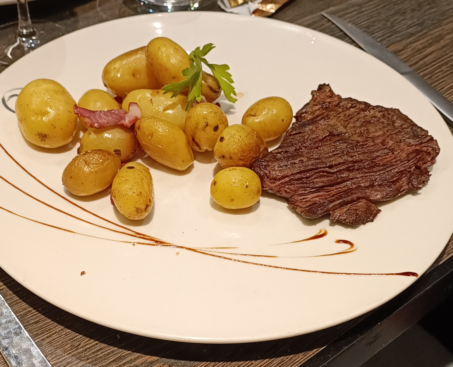 Viande de qualité de cafétéria au prix d'une brasserie,idem pour les pommesdeterregrenailles, j'attends toujours mon verre de vin commandé avec ma viande.Mauvais rapport qualité prix,je ne conseille pas.