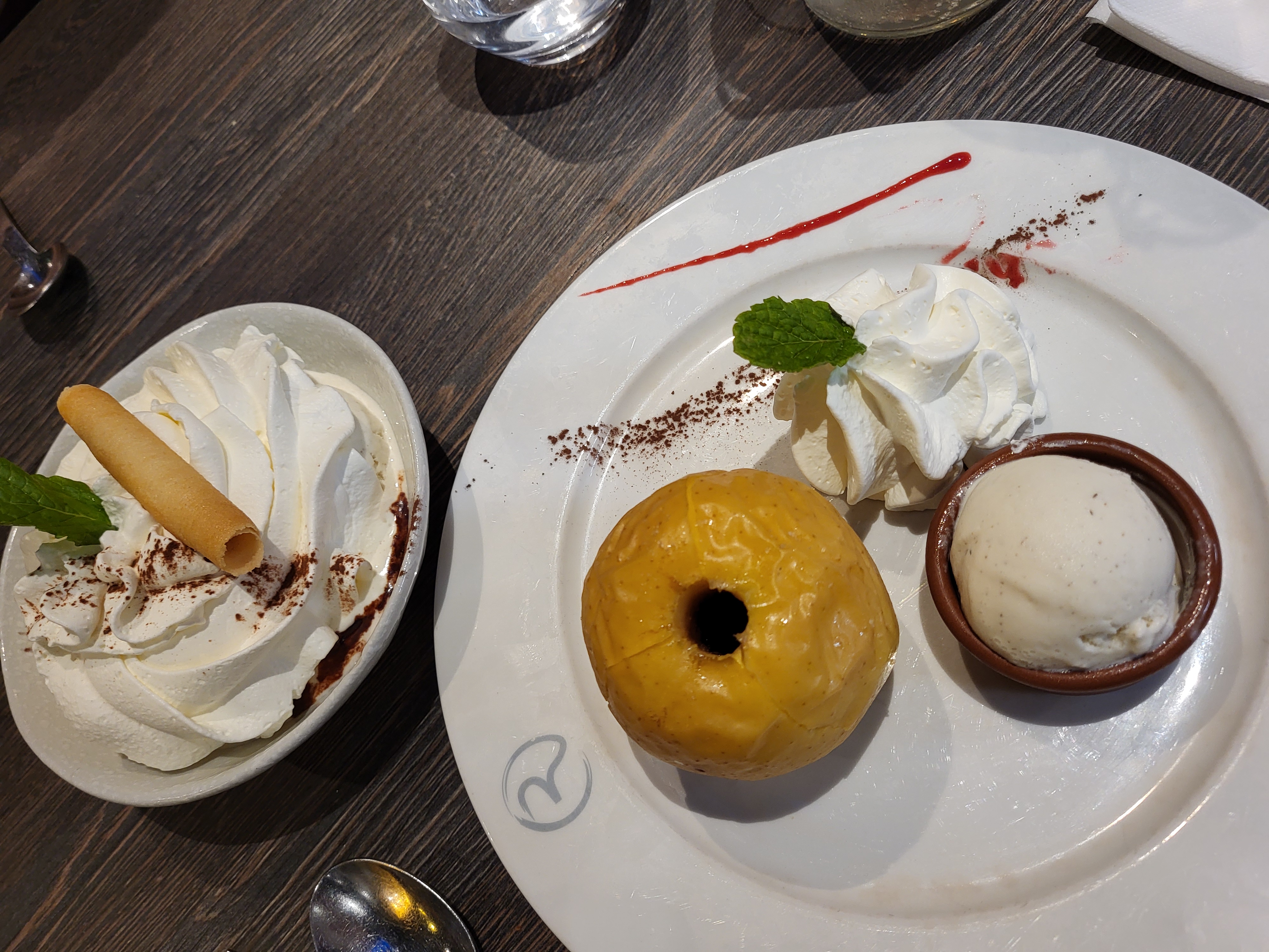 Service long : plus d'1 heure d'attente. Le personnel était restreint mais on aurait pu nous prévenir par politesse (on l'a entendu à une autre table où les gens râlaient) Le plat était bon et copieux. Parcontre le profiterole : le chou rassis et y avait du miel dans la sauce au chocolat... Déçue !