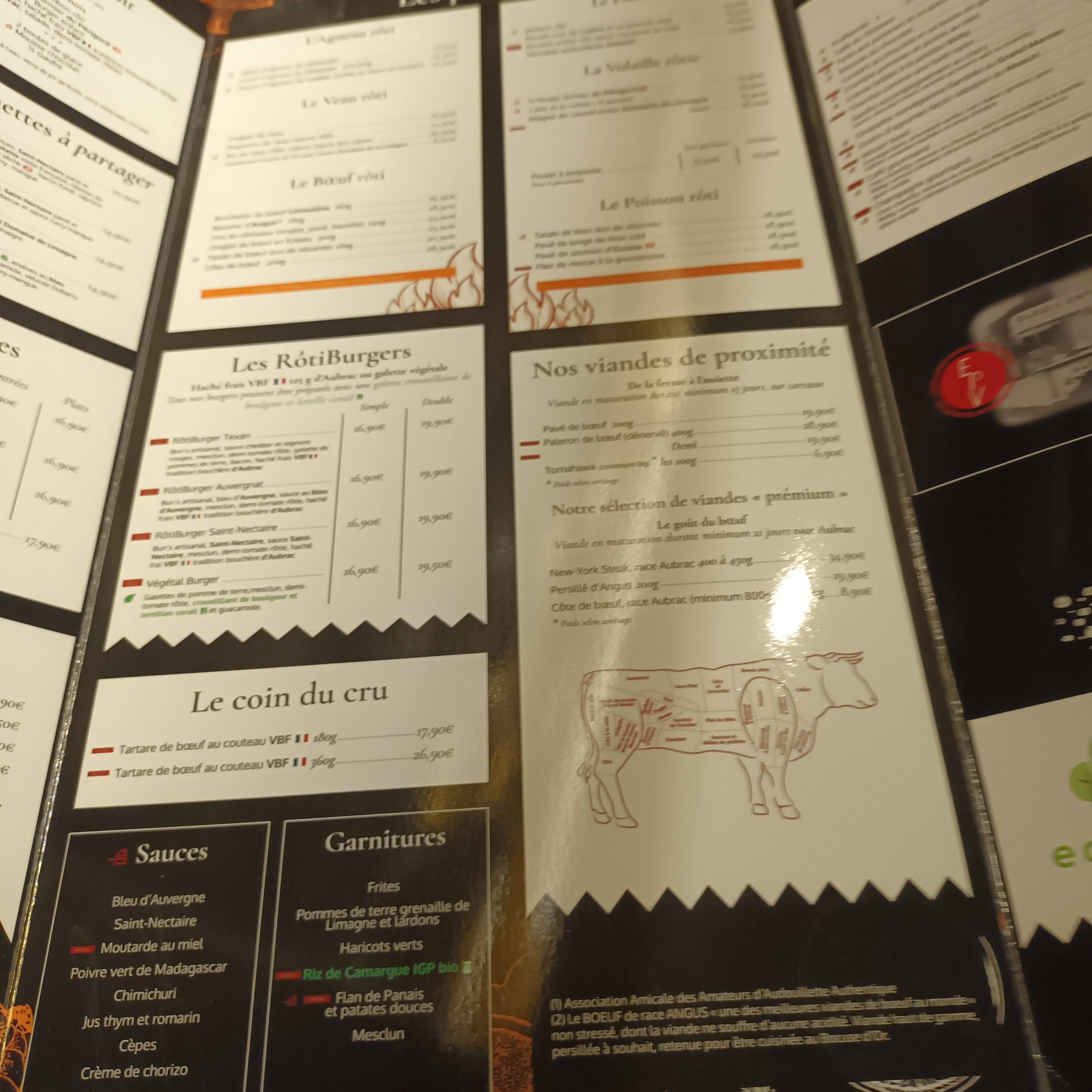 Plats variés et correcte avec pas mal de choix autour de la rôtisserie forcément. Gros bémol sur l'attente un peu longue (30min pour prendre la commande) mais les plats sont bons (Gigot, Onglet, Bavette et Poulet), les Ribs sont gras en revanche passé votre tour. Le serveur c'est quand même excusé pour l'attente et nous offre le menu enfant, pas très honnête car sur la carte il est marqué que le samedi midi le menu enfant est gratuit si un plat adulte hors-formule est commandé. Revoir l'organisation et le service et ce sera nickel pour la suite.