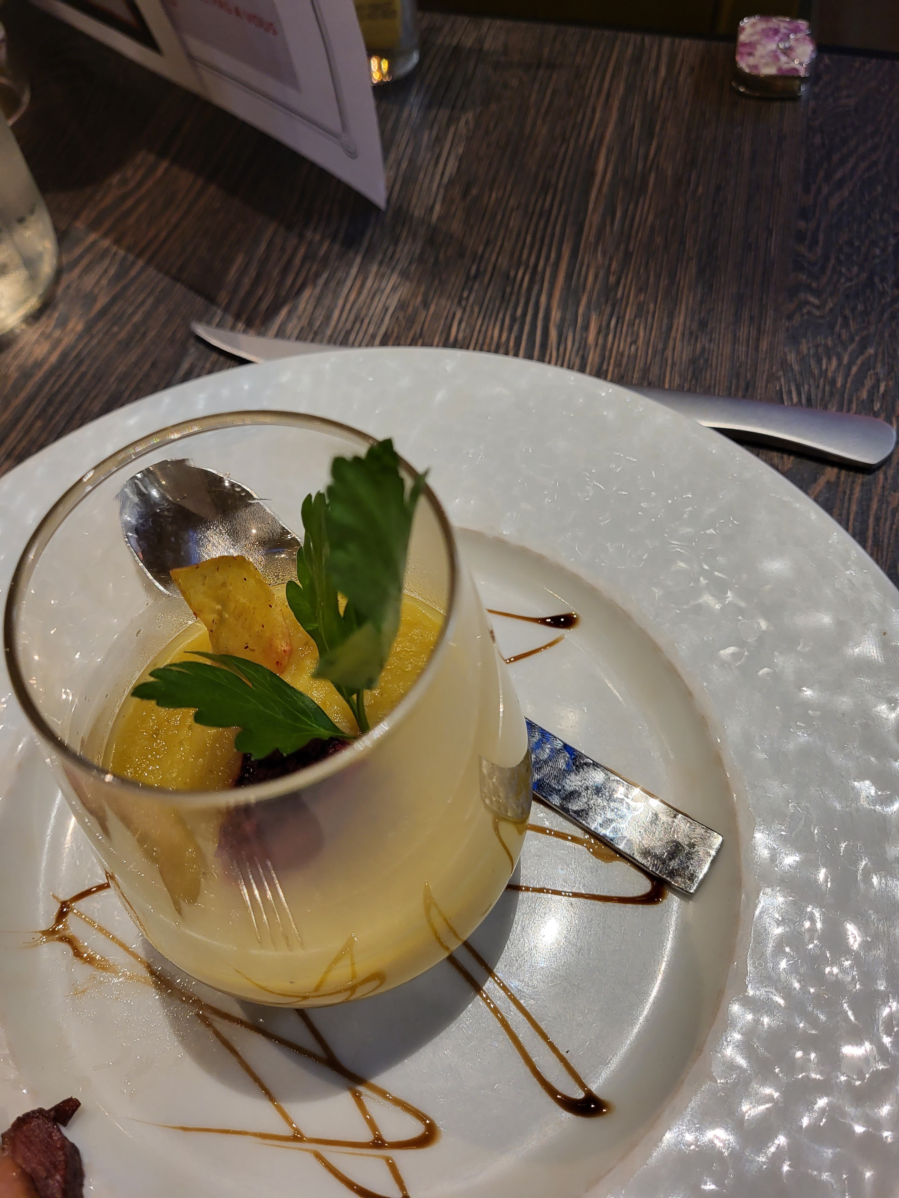 Nous sommes venus dîner hier soir avec des amis et mon compagnon: le restaurant est très joliment décoré, l'équipe du service très professionnelle avec de l'humour et la cuisine est excellente ! Je recommande le menu tradition qui est très complet et vous permet de manger local. Le gigot était ex-cel-lent ! Le rapport qualité/prix est juste. Nous avons passé une très bonne soirée, merci. 🙂