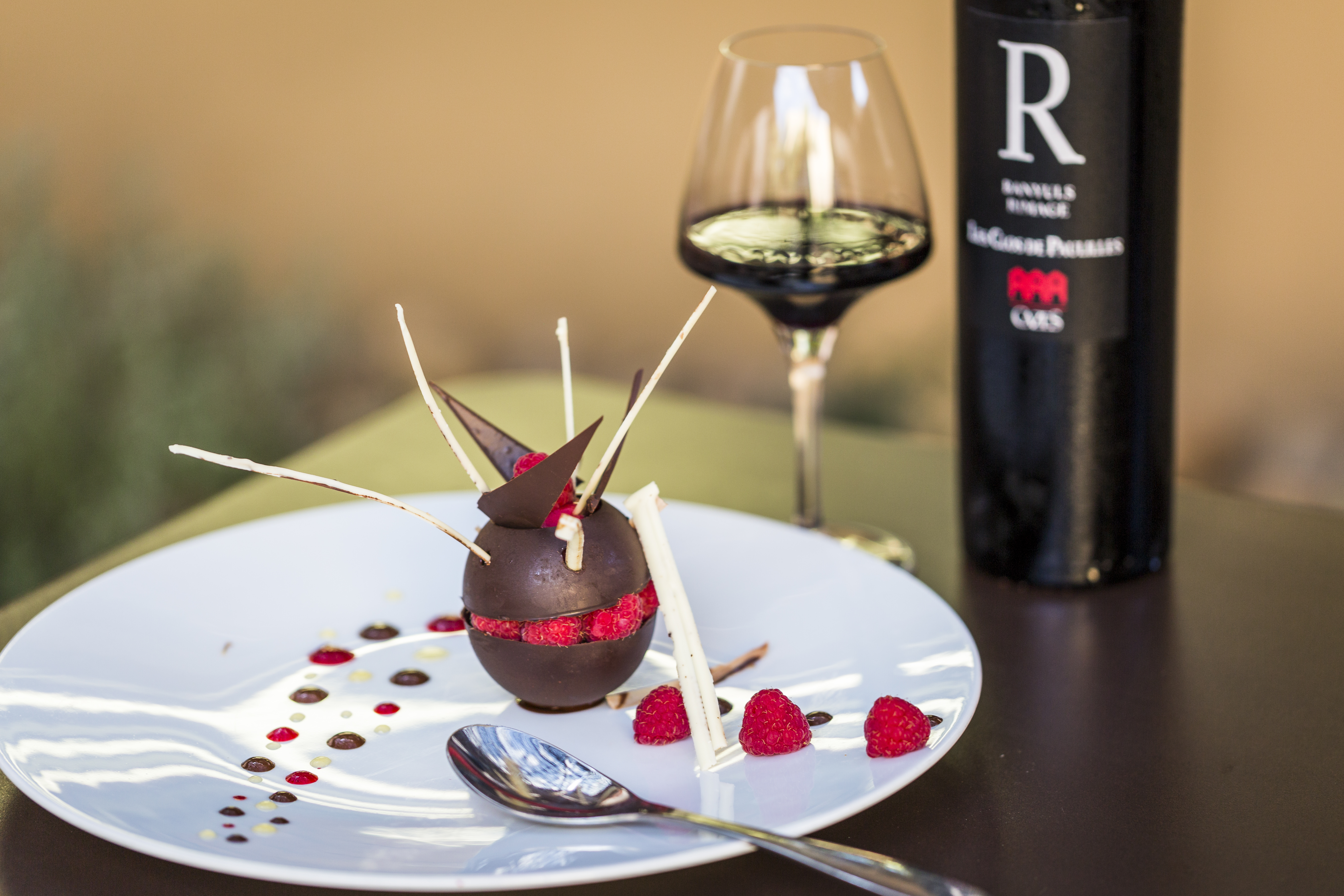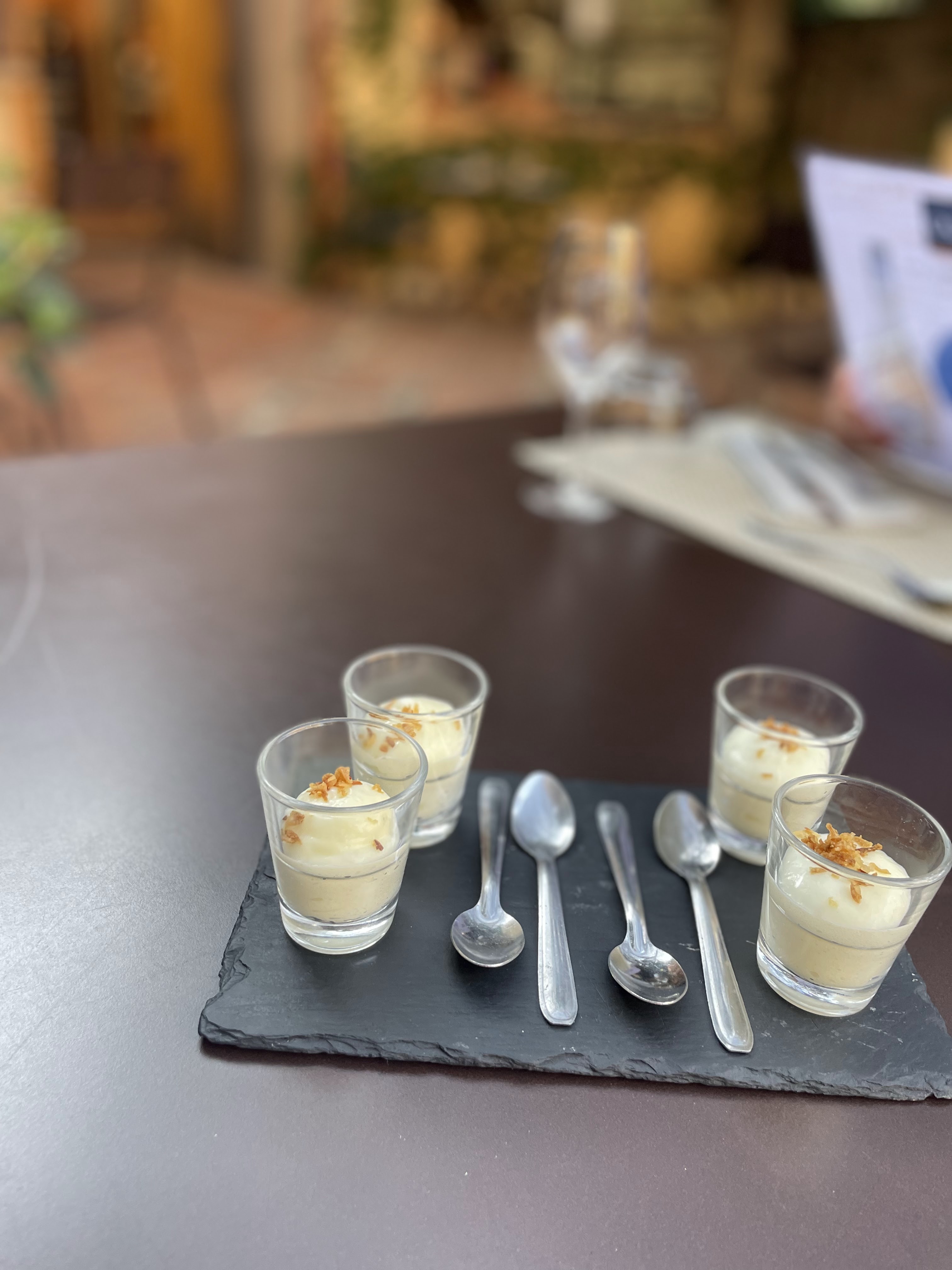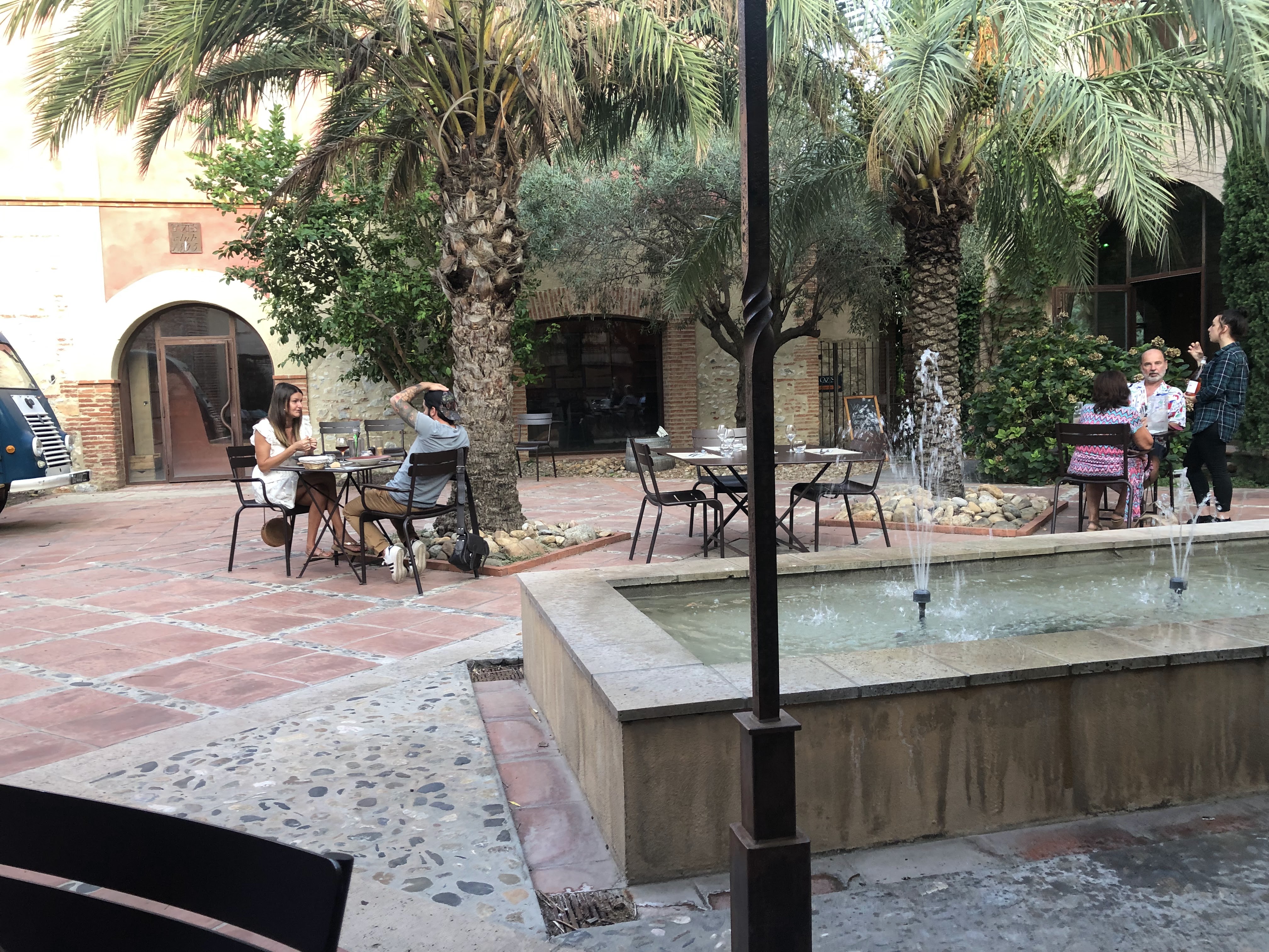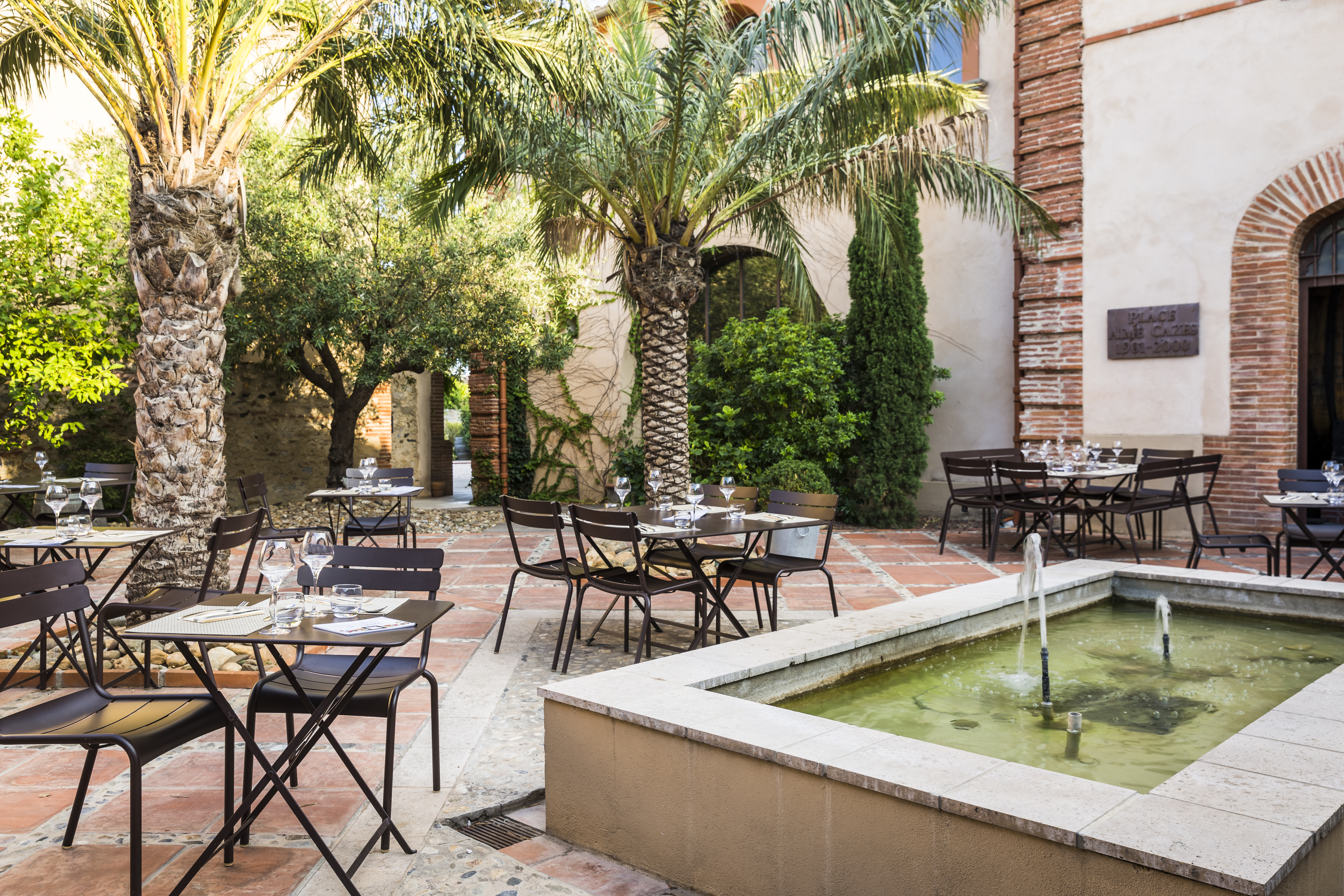 N'y allé pas c'est TROP BIEN. Un cadre romantique avec mur orcre rouge, fontaine, palmier et autres plantes. Le repas 3 choix par plats trop difficiles à choisir. On veut tout. Et biensur le vin Cazes, muscat et rivesaltes et un service au top souriant attentionné .