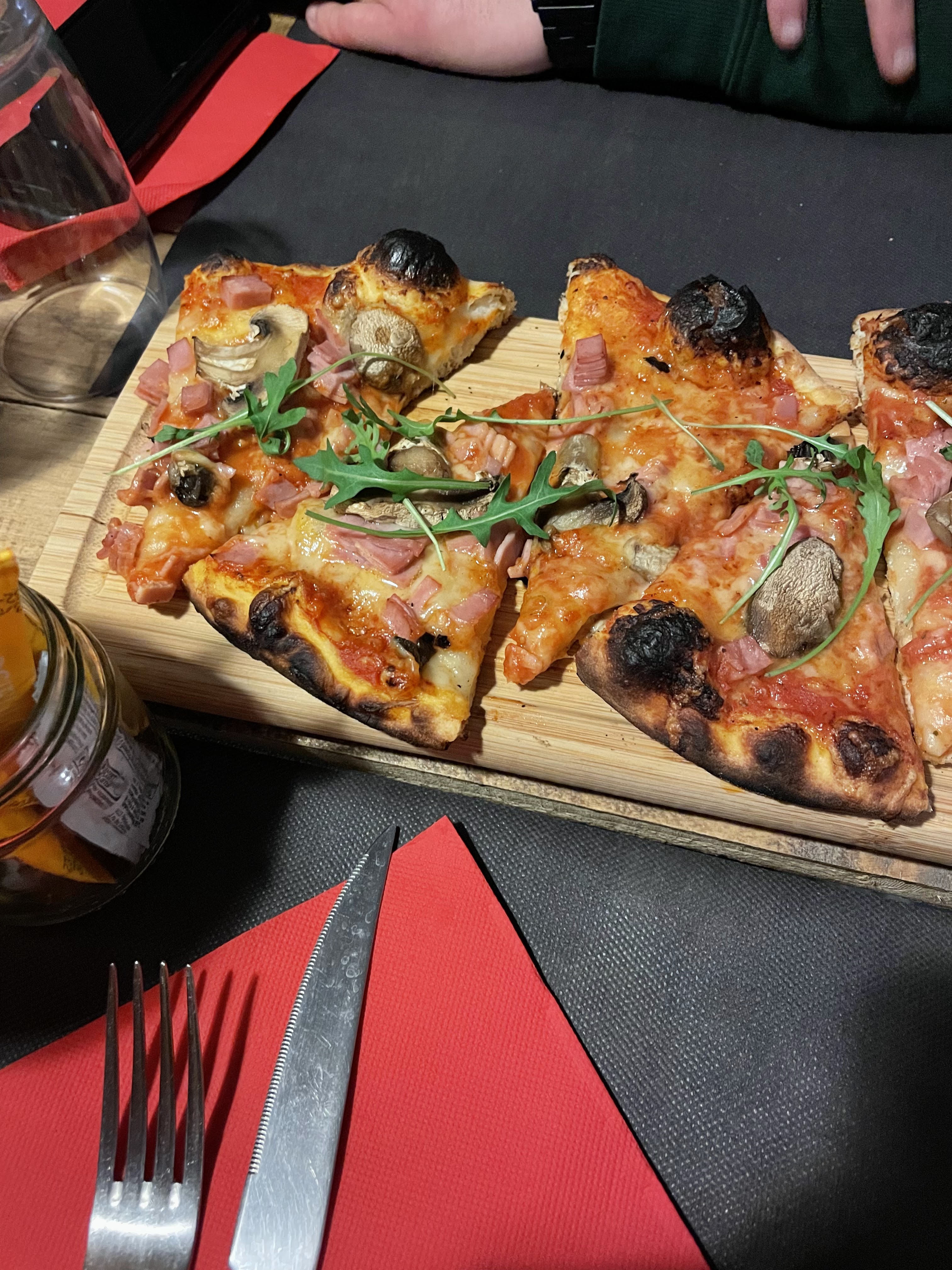 Restaurant chaleureux, tables en bois, service très sympathique. Je n'y ai mangé qu'une pizza, c'était ma première visite: pizza moyenne, sèche.