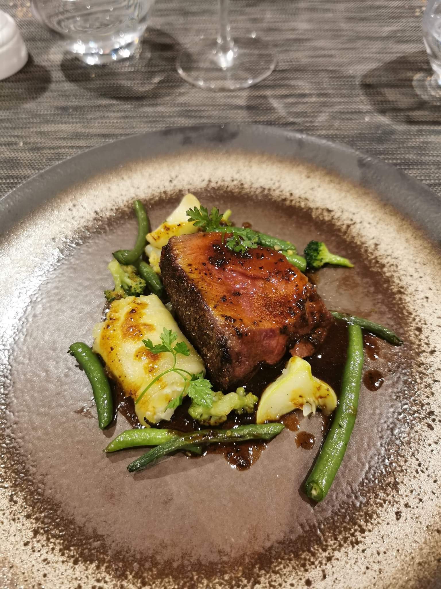 Posté le 08/12/2019 à 17:26"Cuisine raffinée et de très belles assiettes. Le service est attentionnée et discret. Le restaurant est bien décoré"