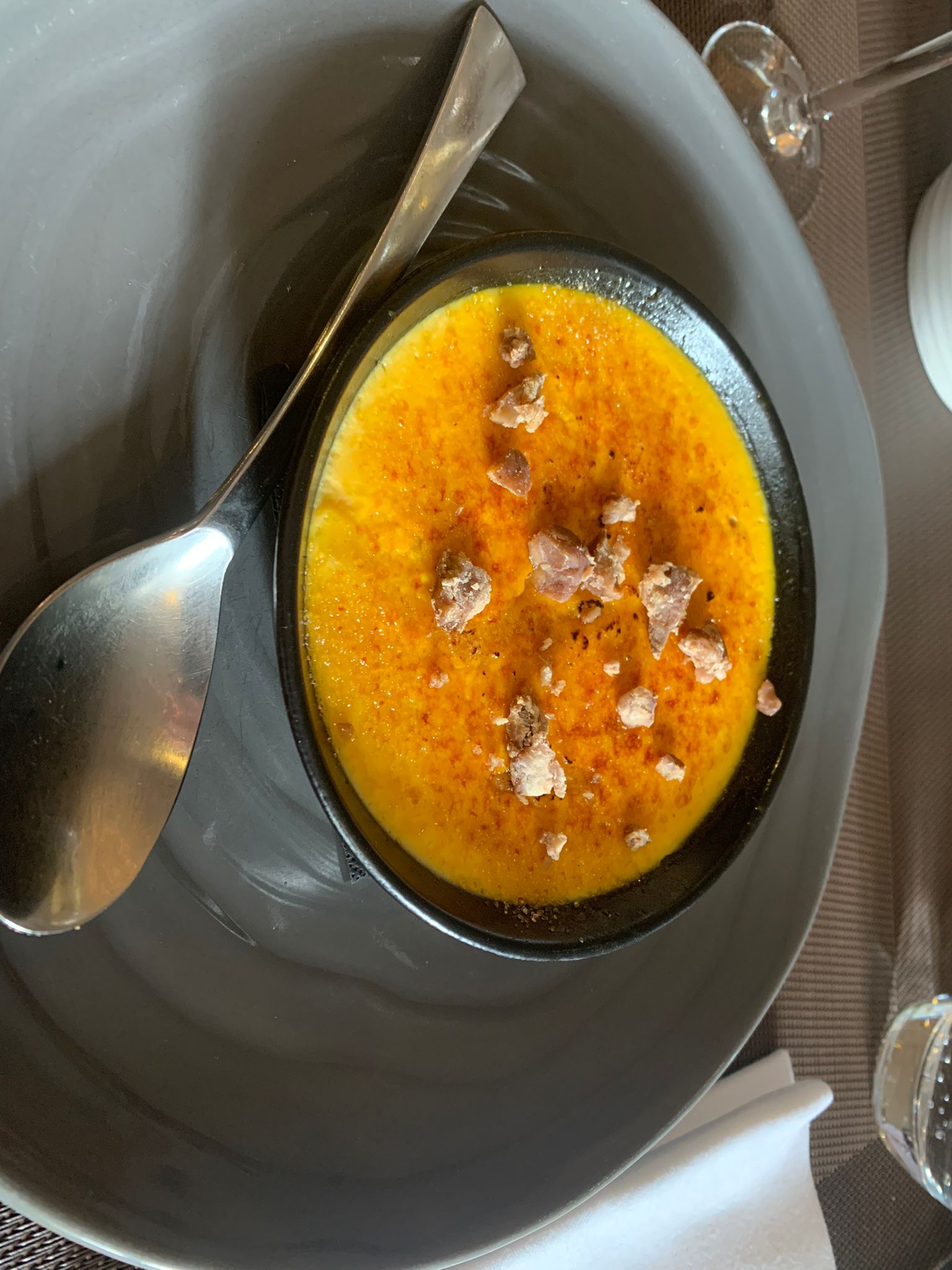 Accueil très sympathique surtout de la part de Sandrine qui nous a conseillé et fait partager sa passion et connaissance étendue sur les vins. Attitude très classe et professionnelle dans chaque geste. Repas top 👌