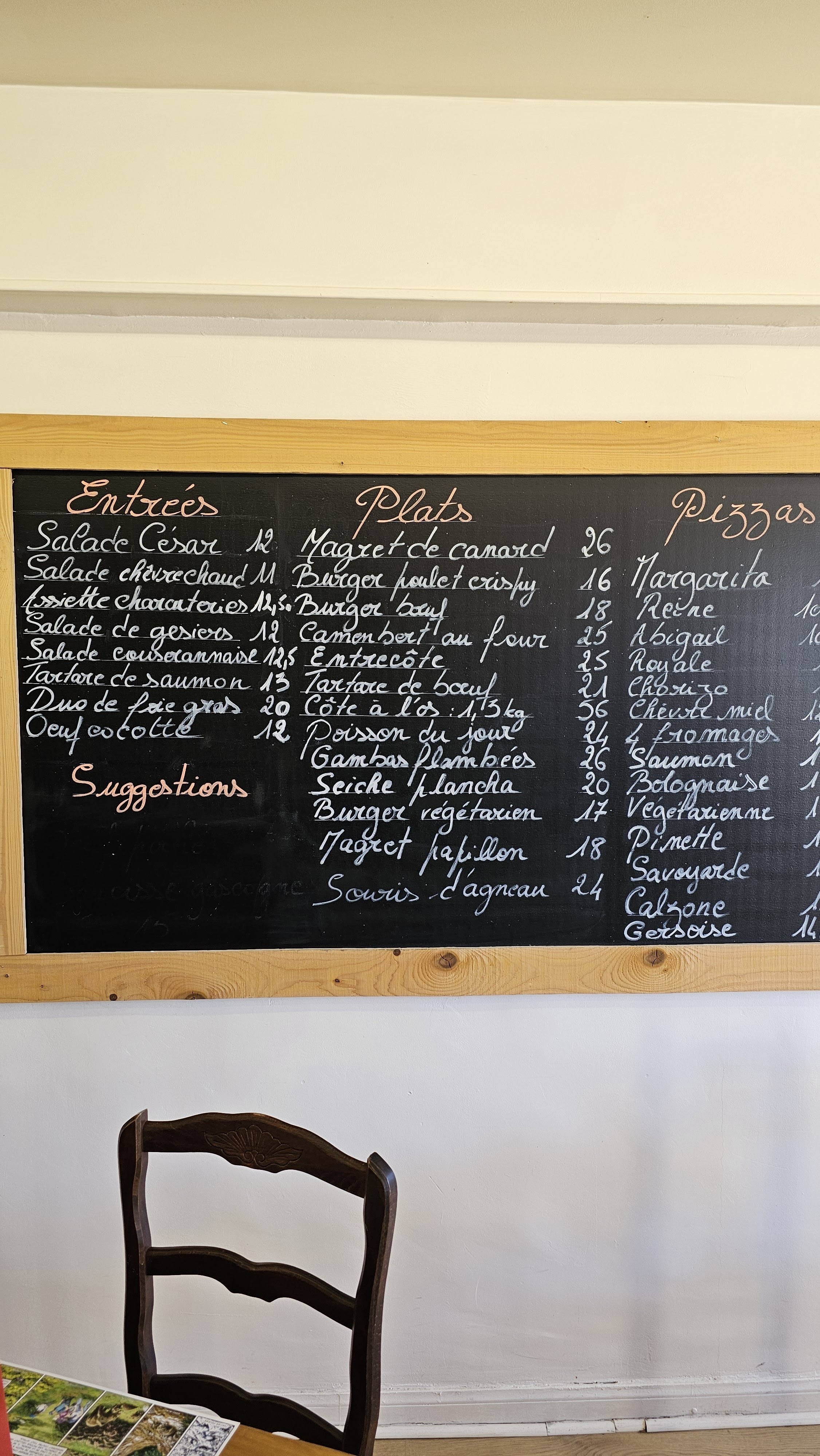 Burger du chef bon avec bon fromage et bonne viande et bien consistant donc bon repas. À mon goût trop de frites dans l’assiette et surgelés sûrement c’est dommage . Pour le service , c’est novice (temps d’attente, réactivité, …) mais c’est sûrement le temps que les choses se mettent en place avec les nouveaux propriétaires …