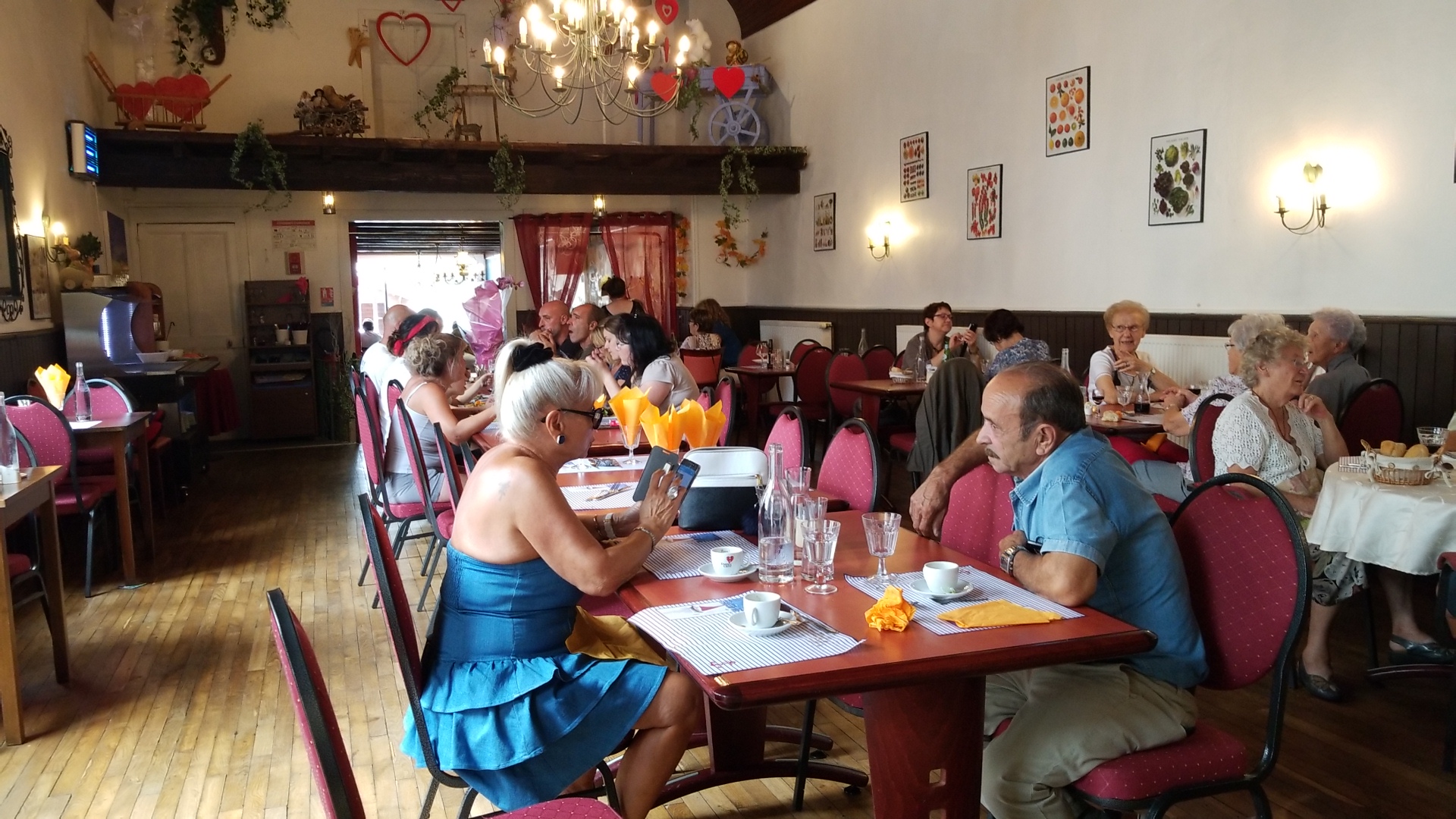 Petite merveille à découvrir ! La salle principale de restauration est une ancienne salle de bal ayant gardée ses peintures et décorations d'origines mais sans chichis. Cadre original, accueil cordial, ambiance sympatique, plats familaux exquis, quantité largement suffissante pour une personne ayant un bon coup de fourchette, patisseries fournies par la patisserie en face du restaurant, prix attractif, service rapide, très propre, parking à proximité de l'autre côté de la rue. Sans oublier la petite terrasse couverte. A recommander sans aucune hésitation, bravo à tout l'équipe.