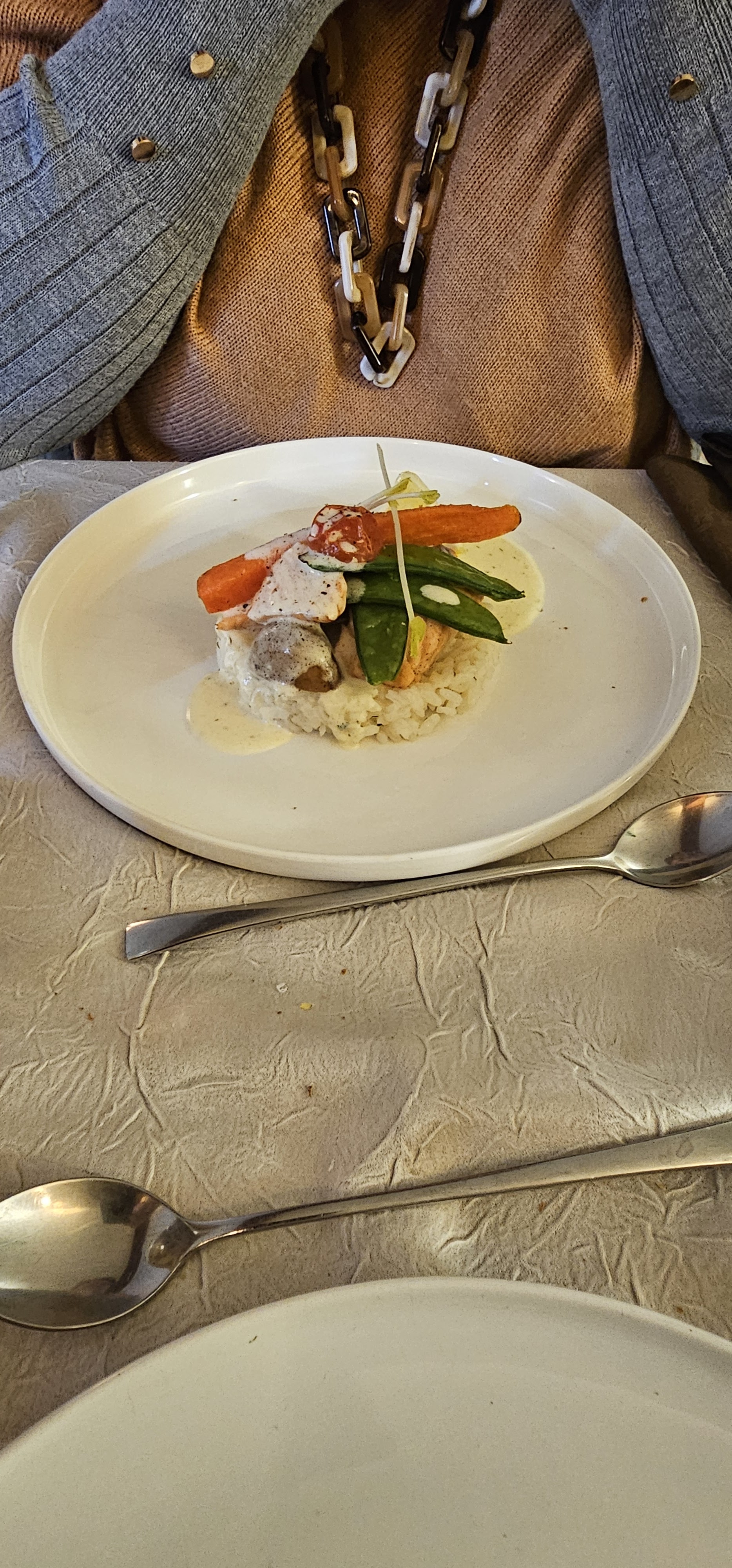 Le petit bémol une entrée un peu trop salée. Le cadre est vraiment super pour une pose romantique .