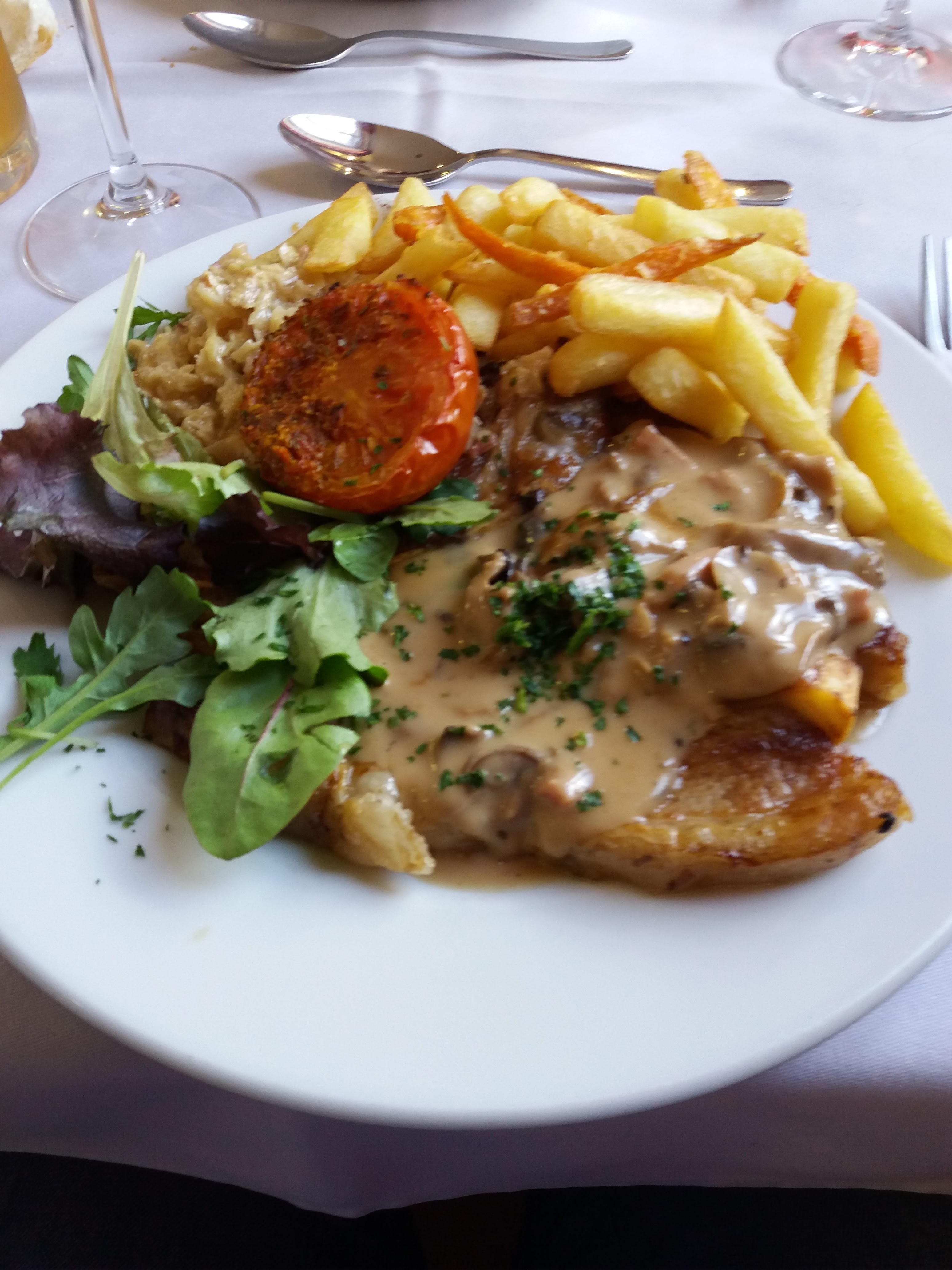 On mange très bien mais il faut être bon mangeur car le plat est très copieux! Par contre le service laisse à désirer, j'ai demandé une carafe d'eau , elle nous a été servie sans verres ! J'ai dû les réclamer. En résumé, on mange bien mais c'est vraiment pas la 'classe'.