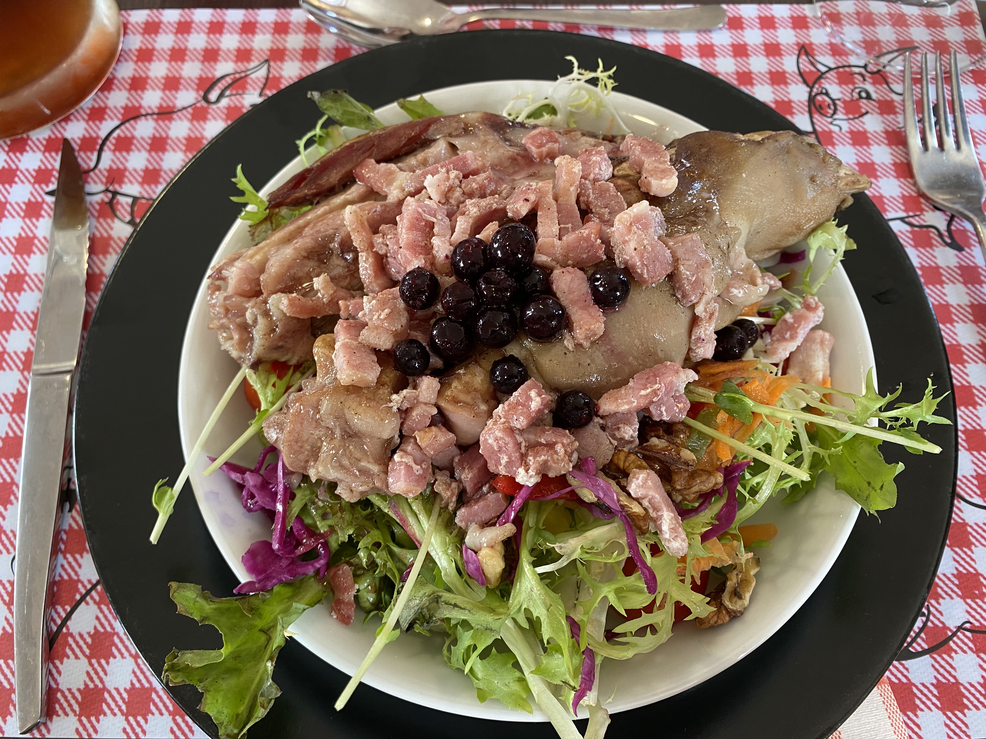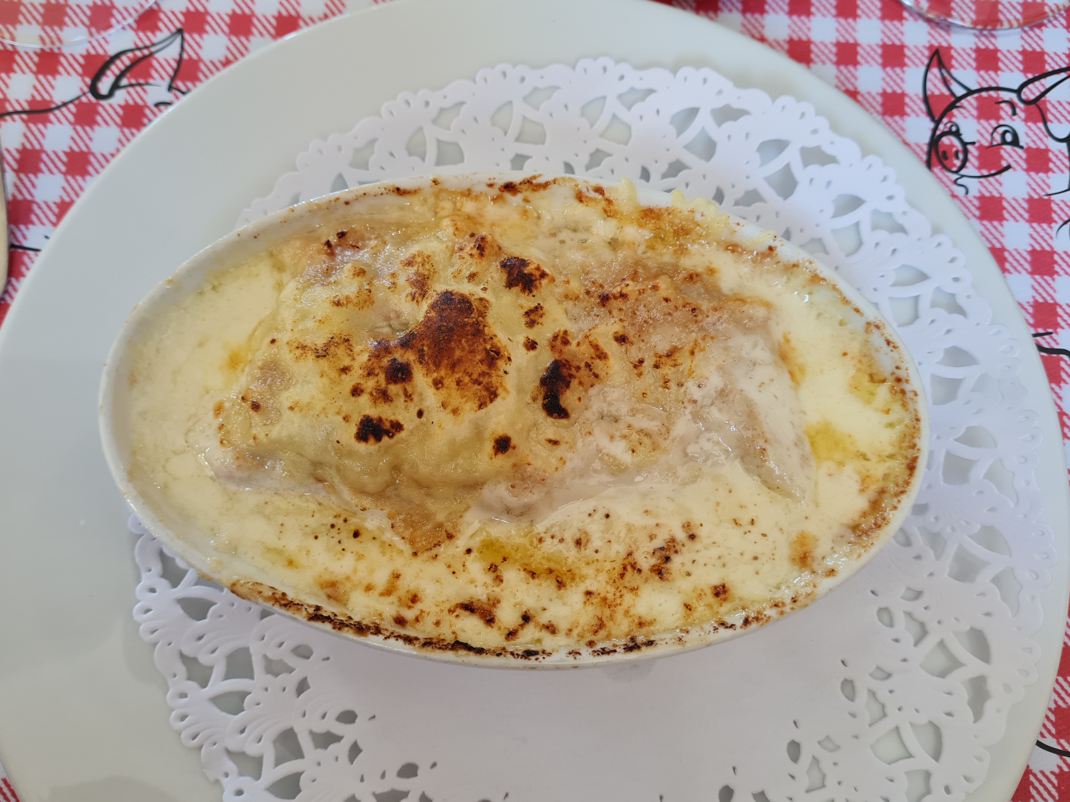 Un bâtiment typique, une décoration kitch avec plein d’objets en forme de cochon, et une cuisine plus que généreuse. Le tout fait un bon moment passé dans ce restaurant, au personnel très aimable. Comme indiqué dans d’autre avis, allez y avec une grosse faim car les plats sont généreusement servis, ce qui n’est pas un problème car ils sont bons. N.B. Peut-être un peu trop de sauce sur les côtelettes de porcelet.