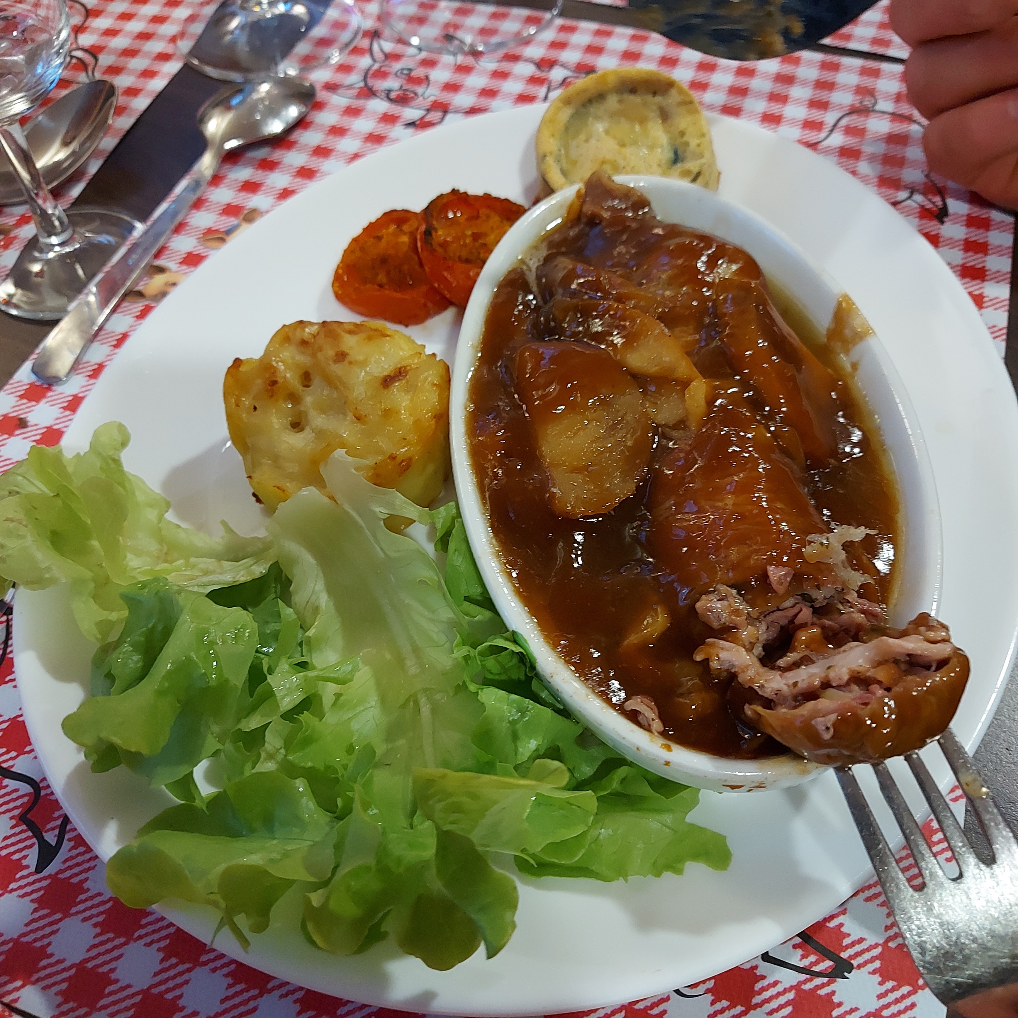 Nous nous sommes laissés surprendre par la générosité des plats. Un régal 🤗 Ne soyez pas trop ambitieux, cette cuisine aura raison des plus grands appétits. Le cadre est en accord avec la cuisine gourmande et locale. Merci.