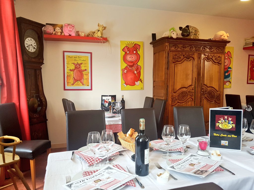 Une très bonne table au parfum d'antan, autour du cochon. La cuisine est généreuse, copieuse. Le cadre est original tourné bien sûr autour du thème du cochon, sous toutes les formes et sous toutes les coutures. À l'entrée du restaurant une petite épicerie avec de quoi chiner, et des produits locaux pour se régaler. Excellente enseigne à faire si vous passez dans la région.