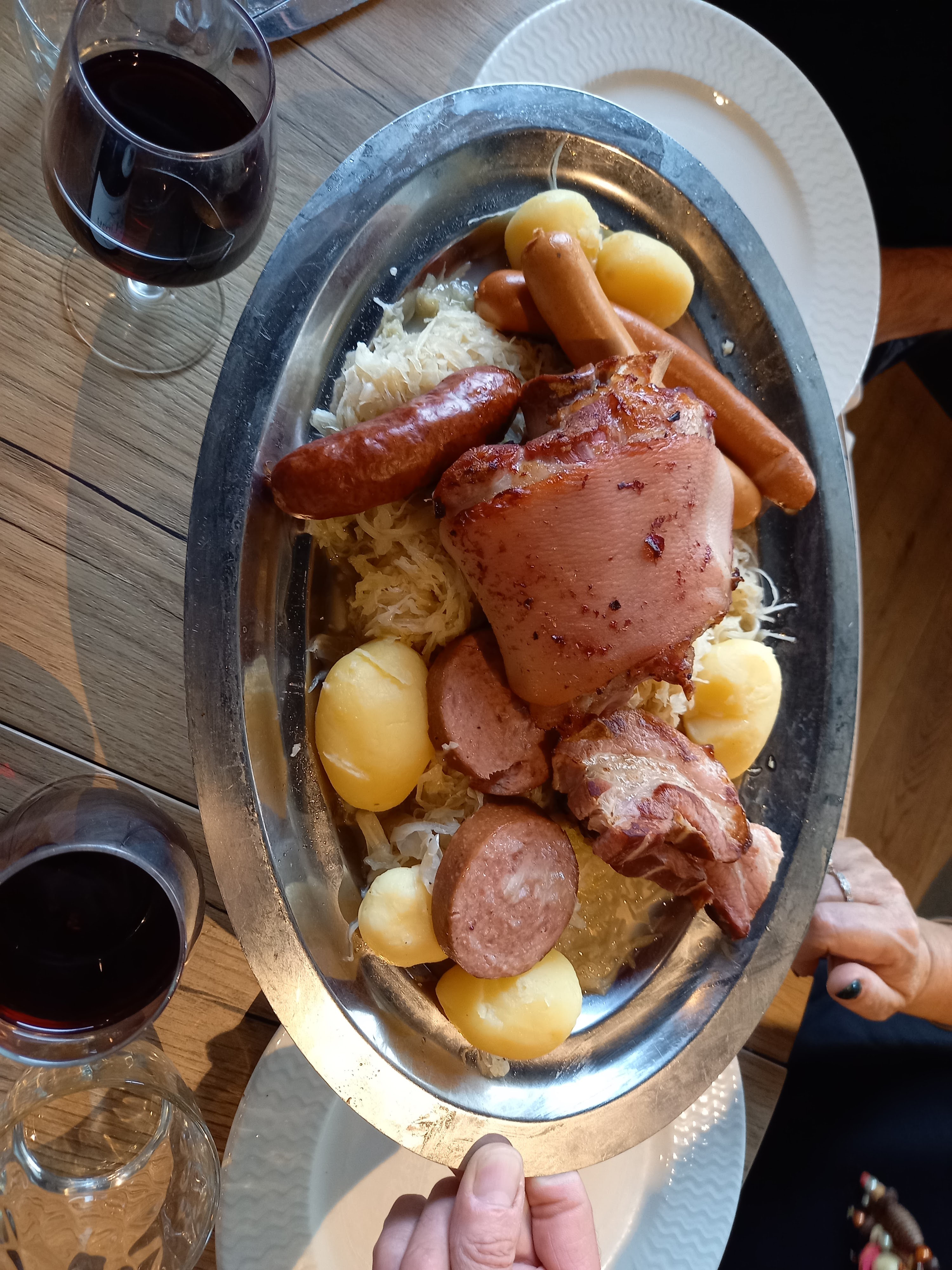 Lieu incontournable pour partager une bonne table entre amis ou famille.. Établissement qui propose différentes choucoutres. On y trouve également des plats de viande, poissons, plats cuisinés.. Les plats sont aussi bien présentés que bon.. Le service est assez rapide cela dépend de certaines soirées mais dans l ensemble il y a peu d attente entre les plats. Cela fait des années que nous y allons. Un peu moins emballés au fil des années entre le prix,la qualité des plats et les proportions des plats.. Très bon restaurant malgré tout..