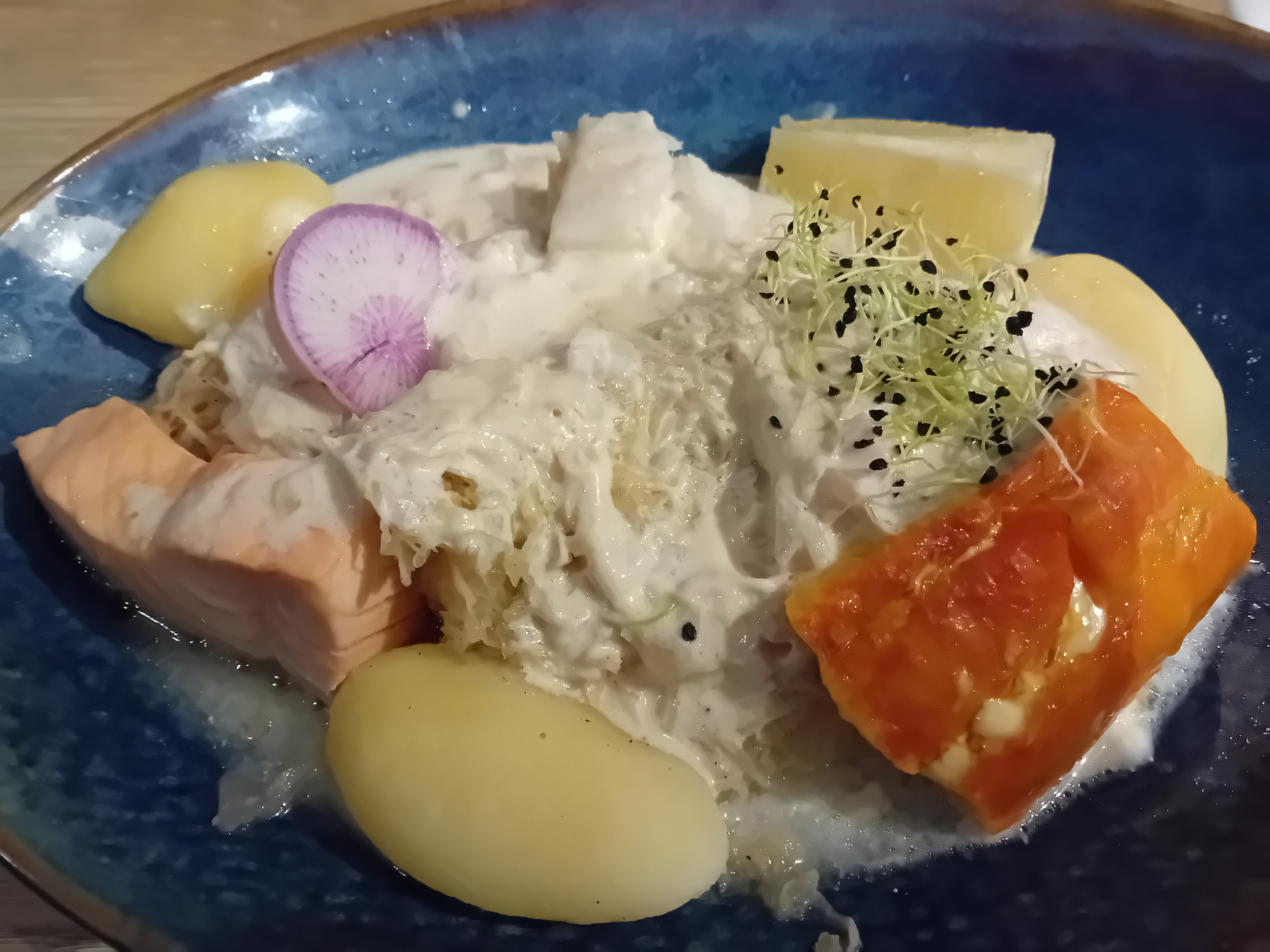 Comment vous dire ? J ai honte. C est la première fois de ma vie que je me retrouve dans l impossibilité de finir mon assiette... On commence par une salade: simple et raffinée. Elle passe à merveille. Puis, voilà la chouette !!! 4 saucisses pour accompagner un morceau de lard et une tranche de salami. Elle n à rien de prestigieuse mais elle passe bien. Et le choux me demandez-vous ? Une vallée, une colline, une montagne, un Everest que même le plus valeureux des avanturiers, ou le plus fou des YouTubeurs, n'auraient pu la terminer. Et le dessert dans tout ça ?? Le bonhomme aillant mangé toute la soirée, se trouva fort dépourvu quand le dessert fût venue... J ai pas pu finir mon assiette et j en ai honte. Merci à l établissement, vous avez fait tomber une légende dans son domaine.