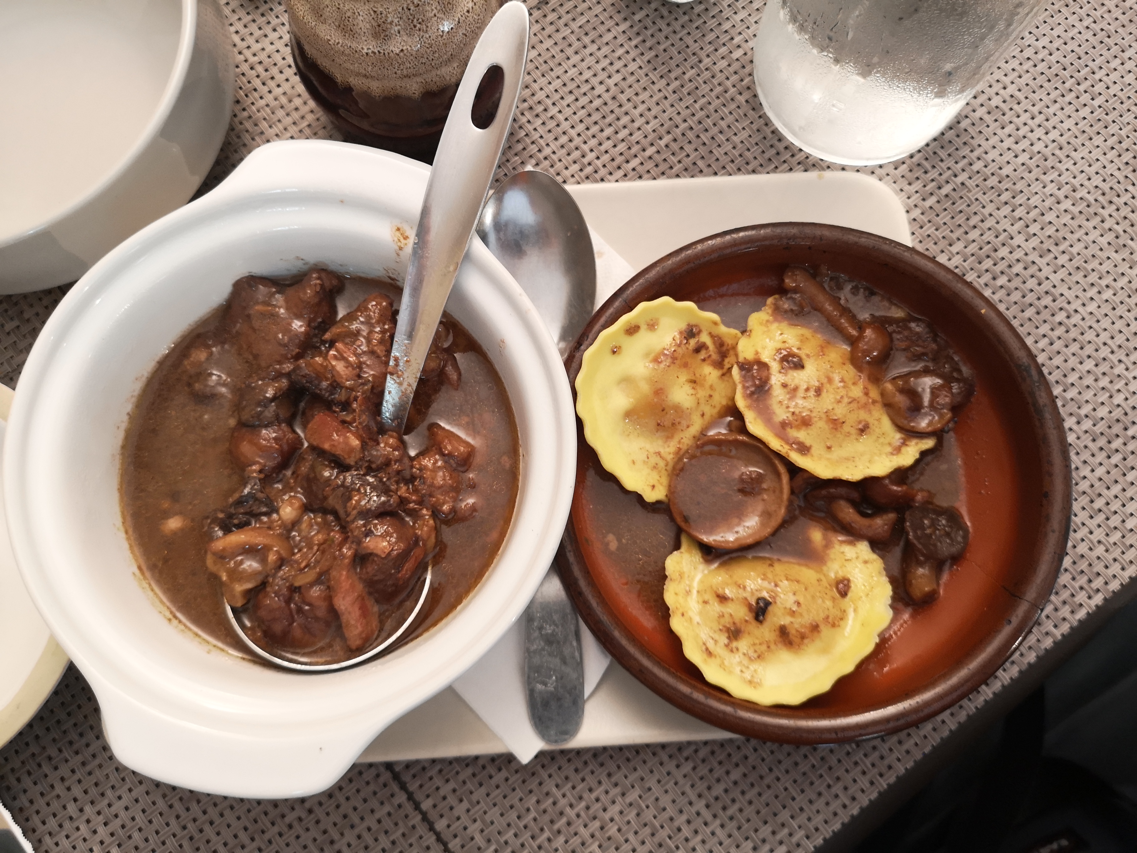 Bjr et merci de votre avis juste pour rectification une daube est un plat en sauce donc liquide a la différence d'un civet et pour la salade de poulpes nous la faisons maison avec de l huile dolive de merindol qui quand elle est conservée au frigo logique pour une salade elle fige alors il arrive que dans certaines assiettes il y ai plus d huile que d'autres au plaisir de vous revoir