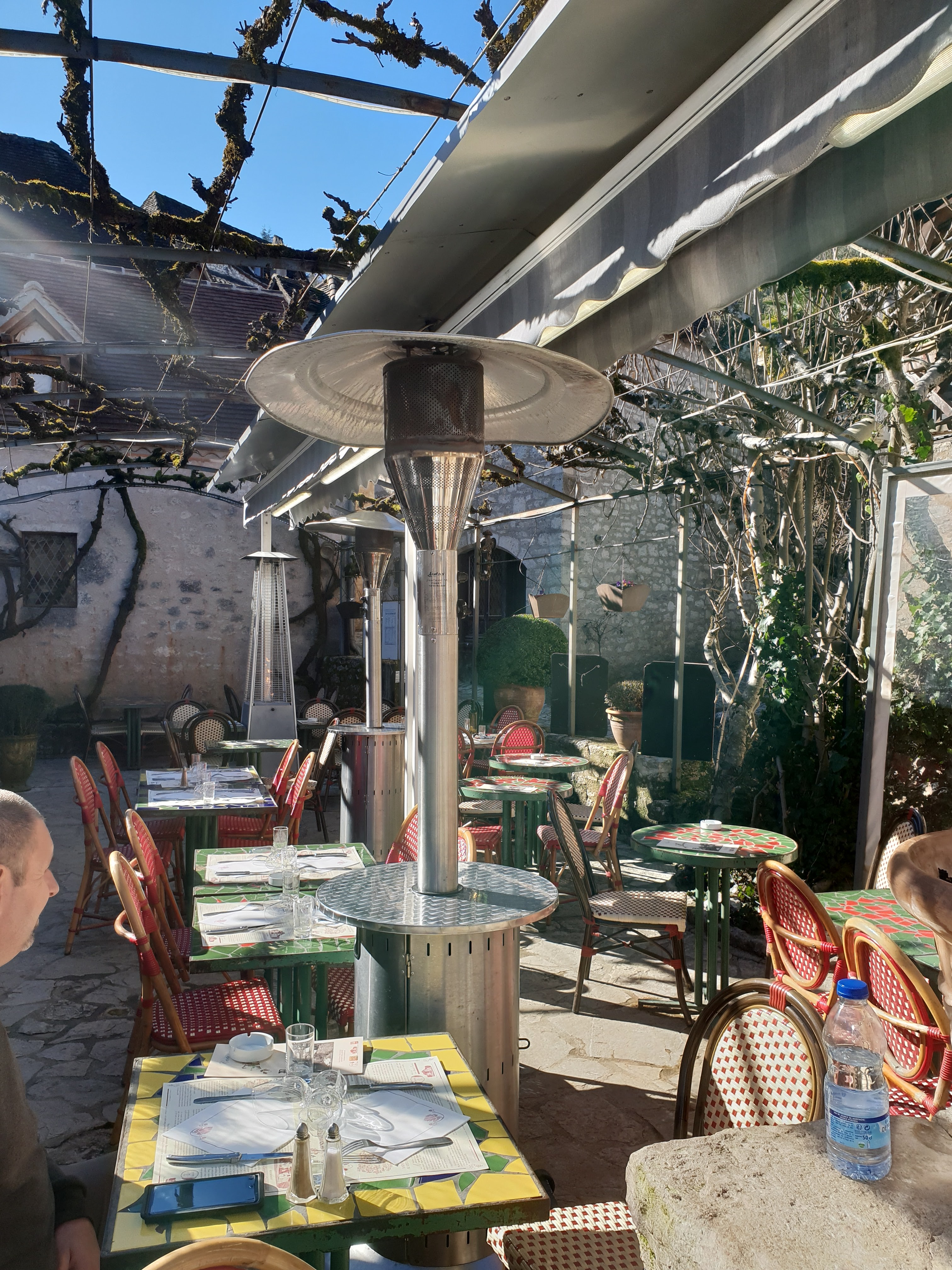 Posté le 04/08/2019 à 20:09"Très joli restaurant avec une terrasse ombragée par une tonnelle de vigne. Seul point négatif,un éclairage aux néons pour le soir au lieu d'un éclairage indirect qui aurait été beaucoup plus joli. Les menus sont très abordables, surtout le plat du jour, situé entre 10 et 14 €. Les parkings sont un peu plus loin, et on accède au village grâce à un chemin au-dessus de la route."