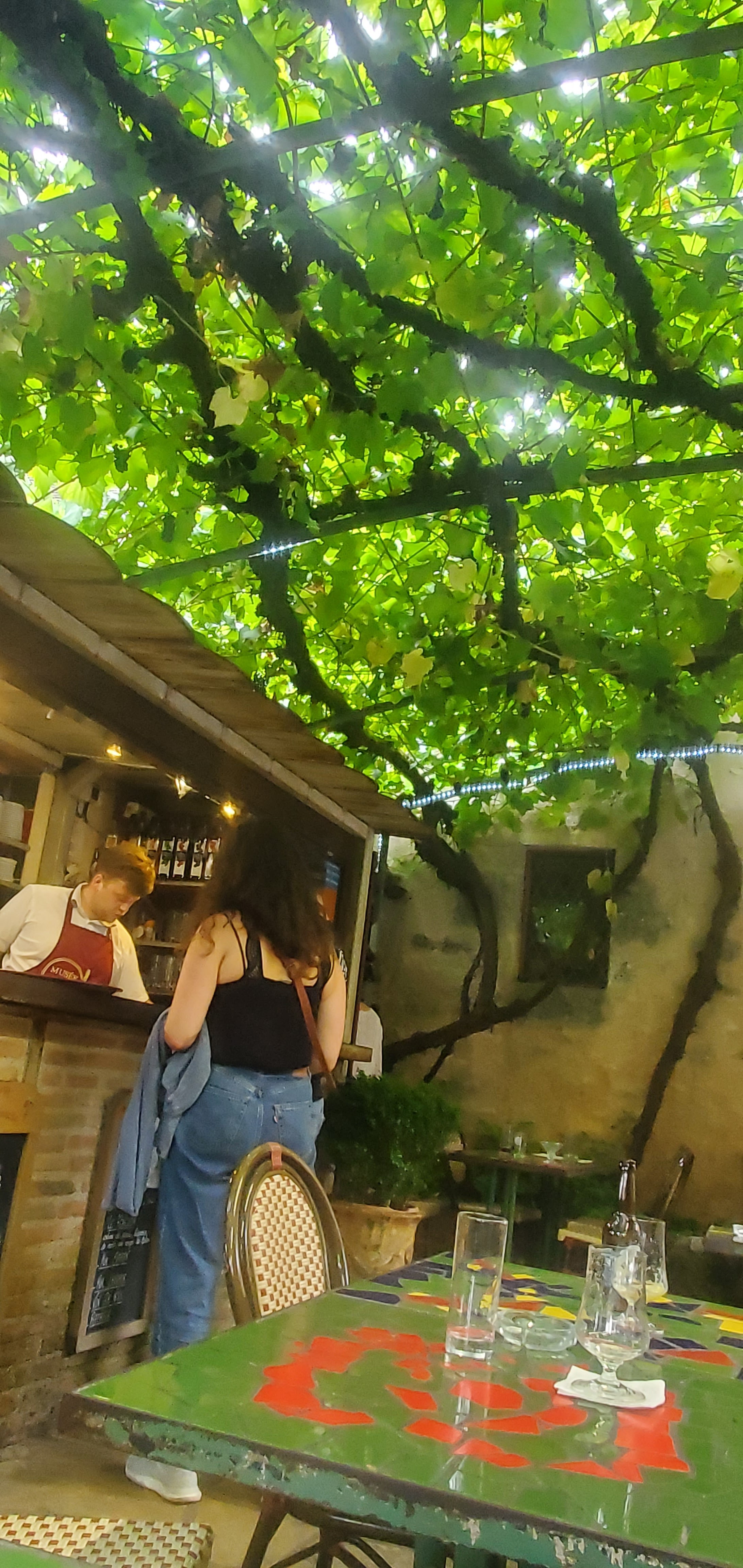 Excellent moment. Magnifique toit en vigne. Repas très bon. Nous avons pris la saucisse et pommes de terre et l'omelette 3 fromages. La Ratz ambrée en pression est très agréable.
