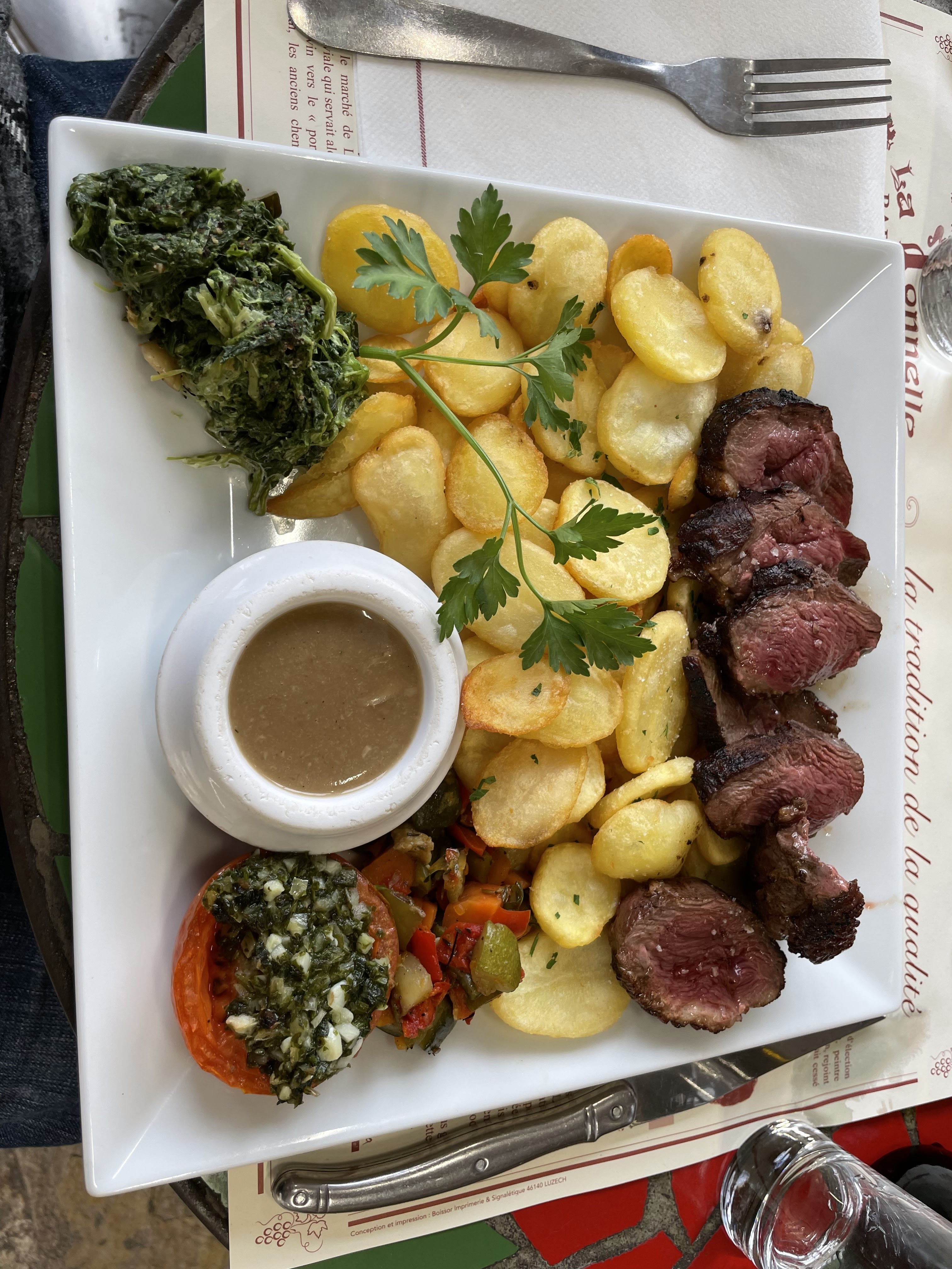 Juste parfait! Des plats si peu chers pour autant de quantité et de qualité. Nous avons mangé en amoureux dans ce restaurant très mignon en plein village. Les serveurs sont très sympathiques et l'attente n'est pas longue même avec du monde. Nous avons pris des aiguillettes et des cous de canards : excellents!!