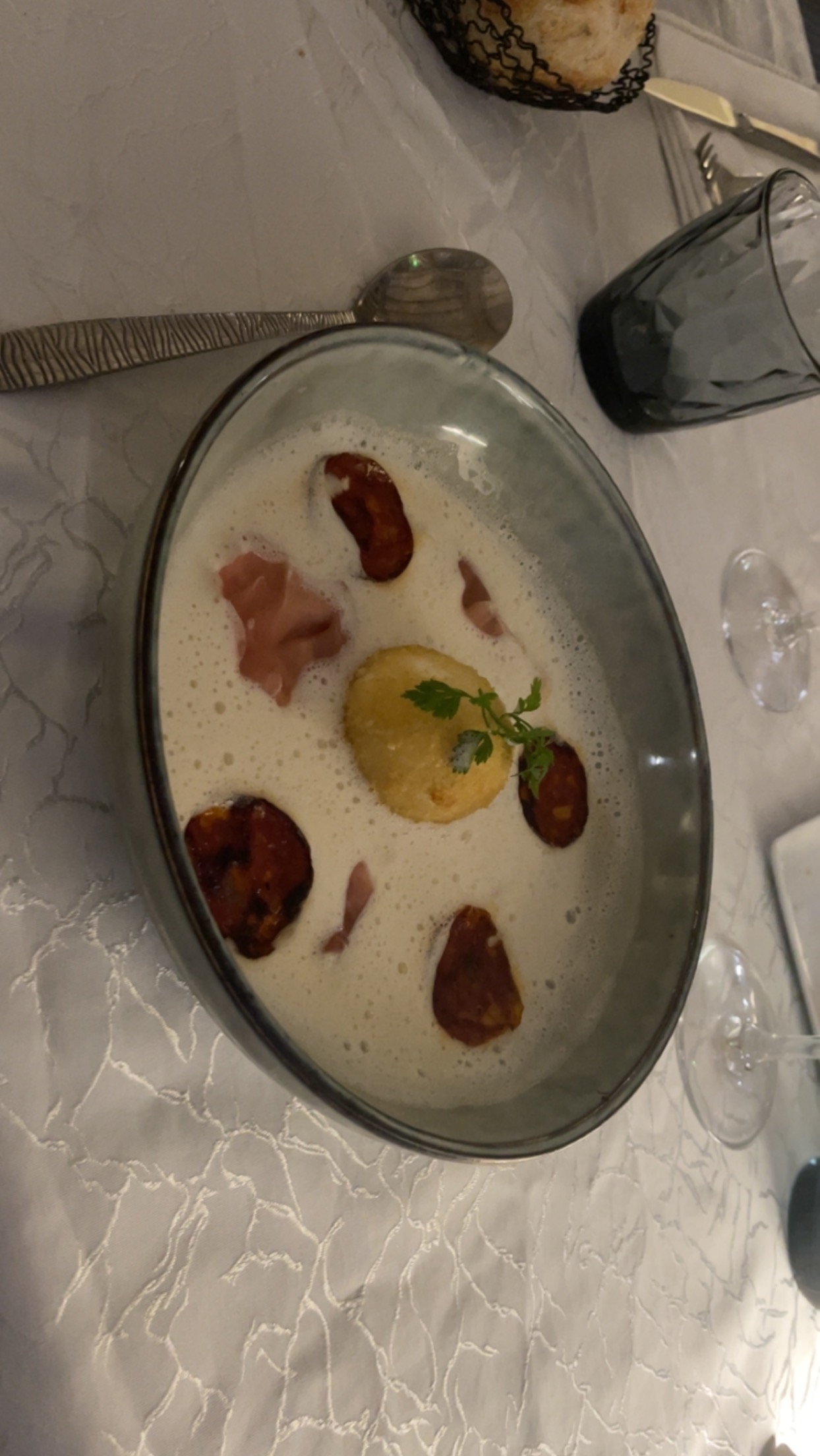Et bien quel plaisir de retourner dans cet établissement. Ambiance feutrée, calme, petits jeunes serveurs très sympathiques et à l'écoute. Mets délicieux et préparés avec soin. Petit bémol pour moi ce n'est que mon avis. Une cuillère à soupe pour finir cette émulsion de Fourme d'Ambert serait un plus et nous éviterait de saucer avec du pain car après plus faim. Assiette encore plus chaude et top du top. Continuez ainsi un lieu incontournable à Évreux. Bon courage à vous pour la suite qui j'espère ne sera pas aussi catastrophique. Compliments au chef et à sa brigade on oublie souvent. Standing ovation
