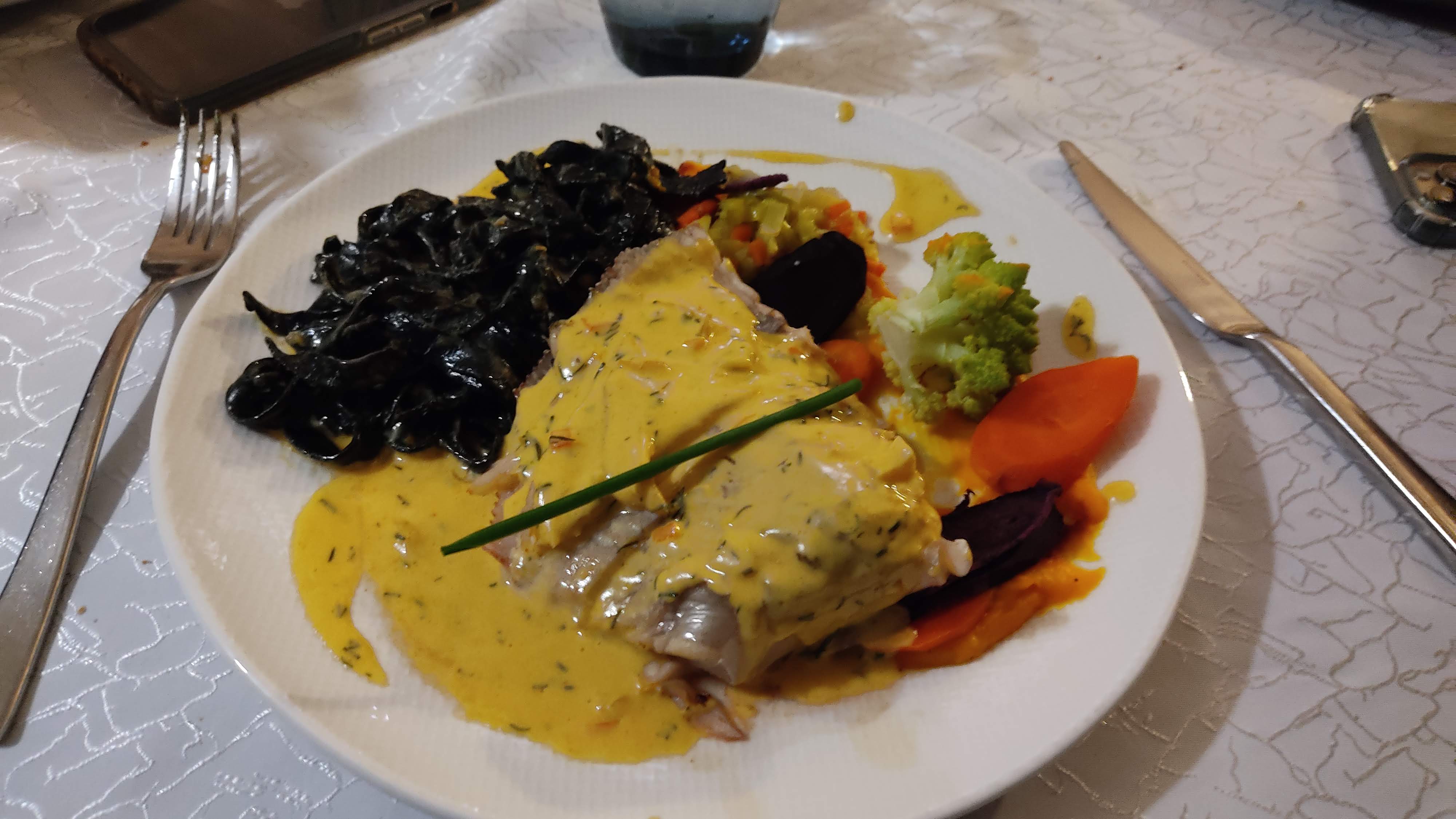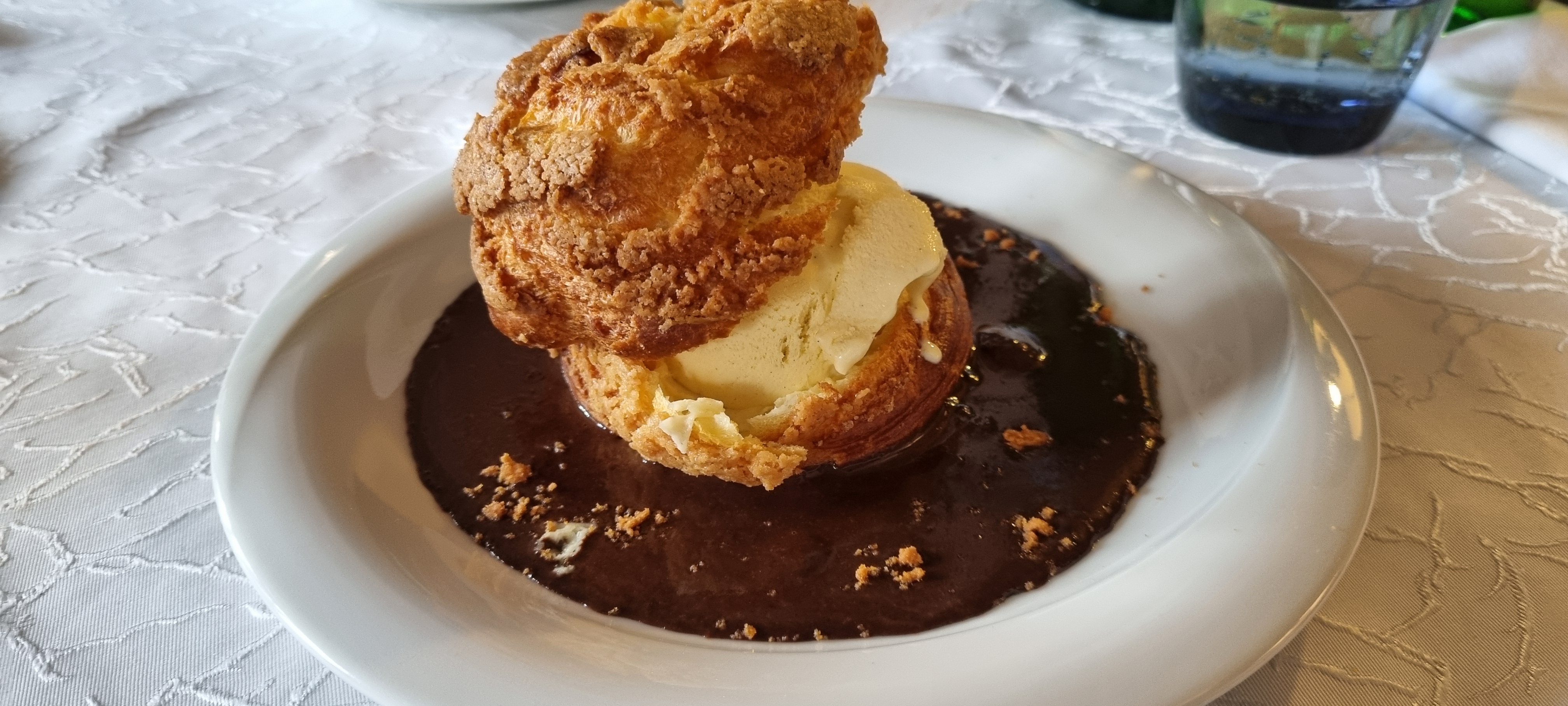 Très déçue du turbo beaucoup beaucoup trop cuit (je comprends pourquoi on m'avait prévenue que pour le turbo il y avait 20 min d'attente 🤪) et accompagnements froids J'en ai fait part à la fin du repas aucune excuse juste je vais le dire au chef même pas un café offert. Profiteroles trop petites et chocolat sans saveur Les menus (je parles du support )sont hors d'âges et sales