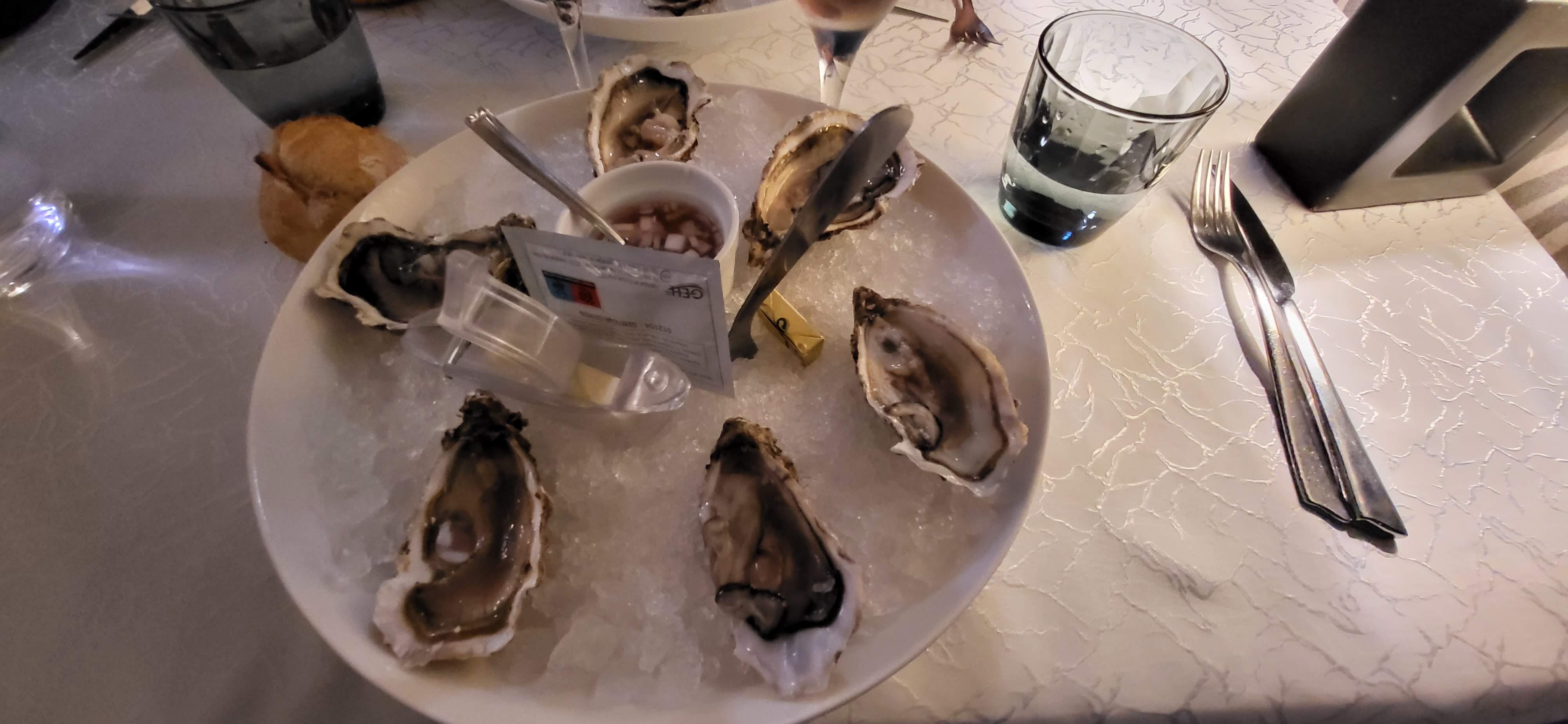 Menus à 40€, accompagnement apéritif : potage de butternut : choix surprenant. assiette de fruits de mer : déçue de n'avoir aucun pain spécial pour accompagner (pain de seigle pour les huitres), frites fraiches pas très fraiches, par contre presque froides un peu sauvées par les assiettes qui elles étaient chaudes, petits légumes très bons, assiette de fromages très froids et très basiques, sans possibilité de choisir, pâte de la profiterole au chocolat peu réussie à mon goût.Accessoirement nous aurions également apprécié une petite assiette pour déposer le pain. A par ces détails le reste était bien.