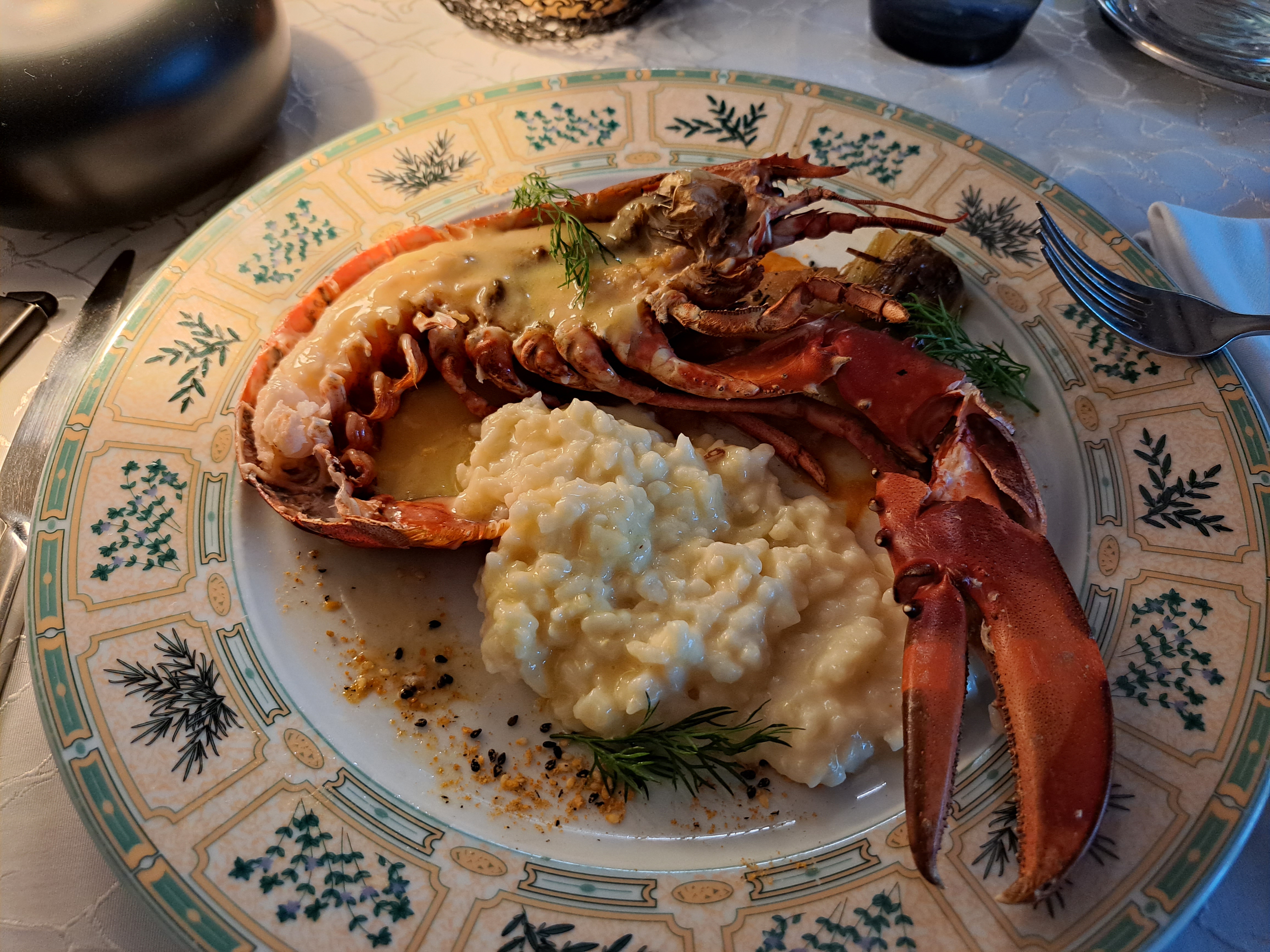 Un très bon restaurant, nous nous sommes régalés, plats délicieux et originaux : oeuf en cocotte, bons poissons, le homard était manquant, déception... Service très sobre et une erreur sur la taille de l'assiette de fruits de mer commandée à la carte et servie comme un menu, signalée le deuxième soir, car c'est en revenant un deuxieme soir d'affilée que nous nous en sommes aperçus en reprenant la même chose, sans geste commercial apres l'avoir signalé au serveur... Un dessert un peu plus léger serait un plus.