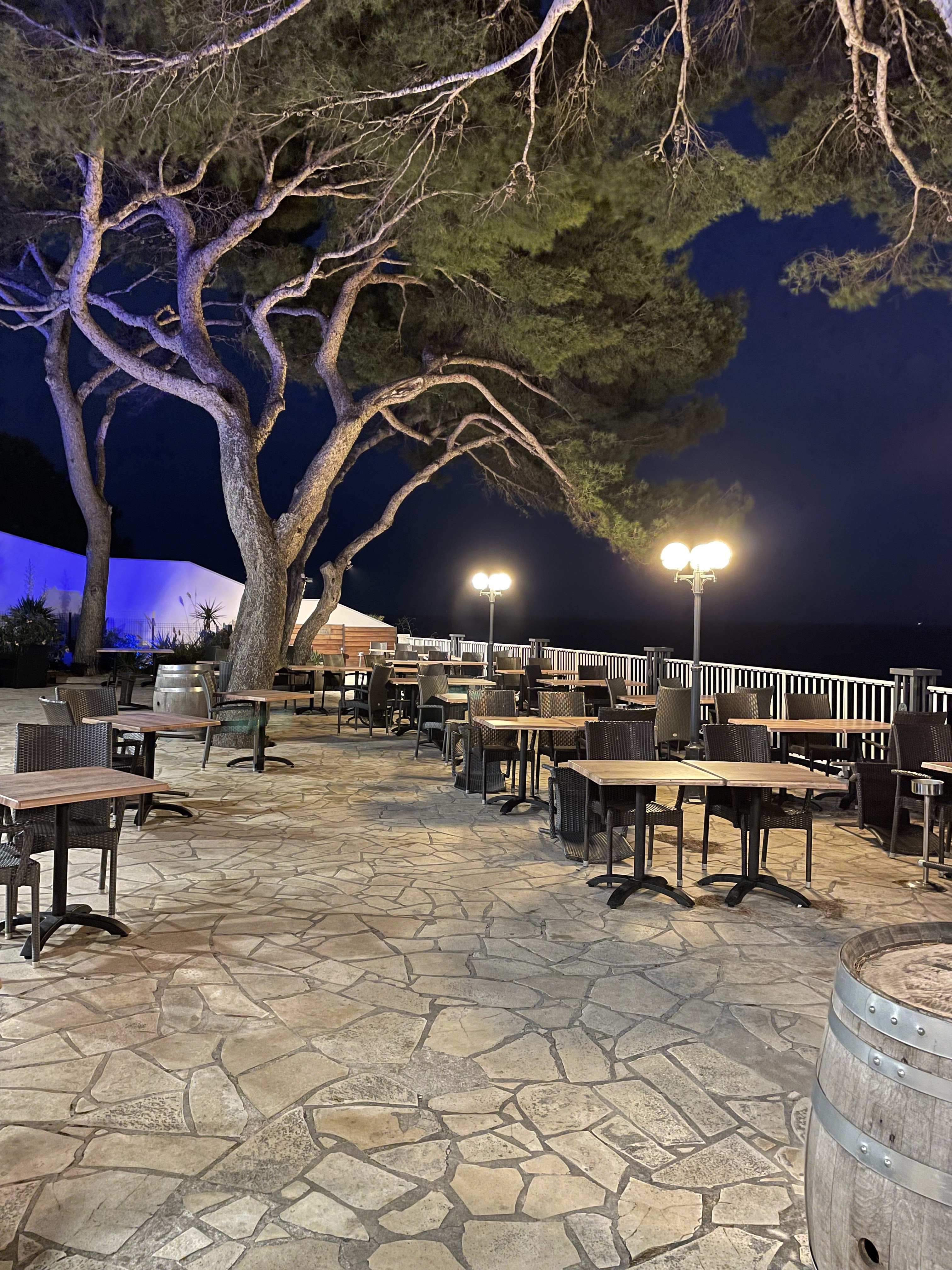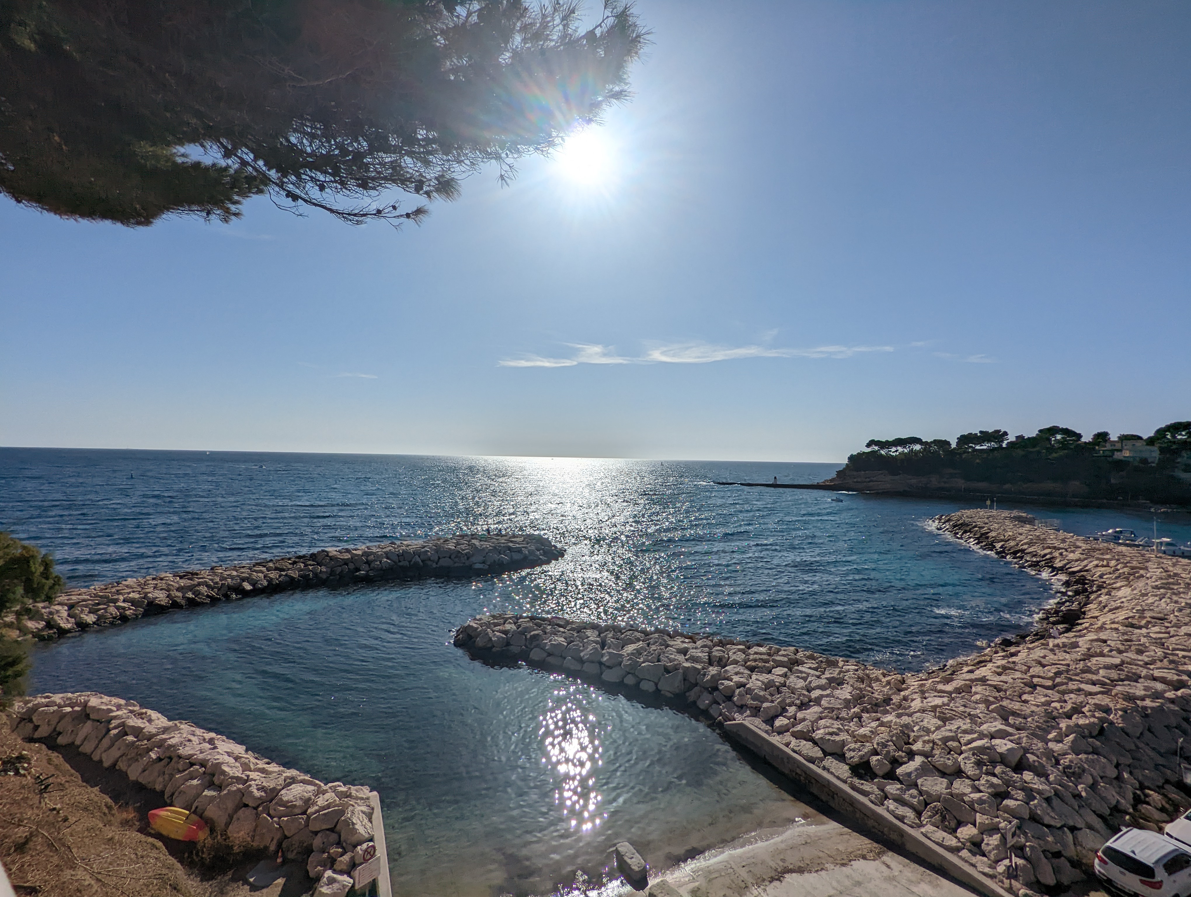 Endroit tres agreable un dejeuner avec un service au petit soin a l ombte des pins et au son des cigales avec vu sur la grande bleue personnel souriant et agreable. Le menu a 36 euros est de tres bonne qualité et en quantite largement suffisante une entree au top un poisson cuit a point et un Dessert rafraichissant nous y retournerons pour gouter aux autres menus de la carte