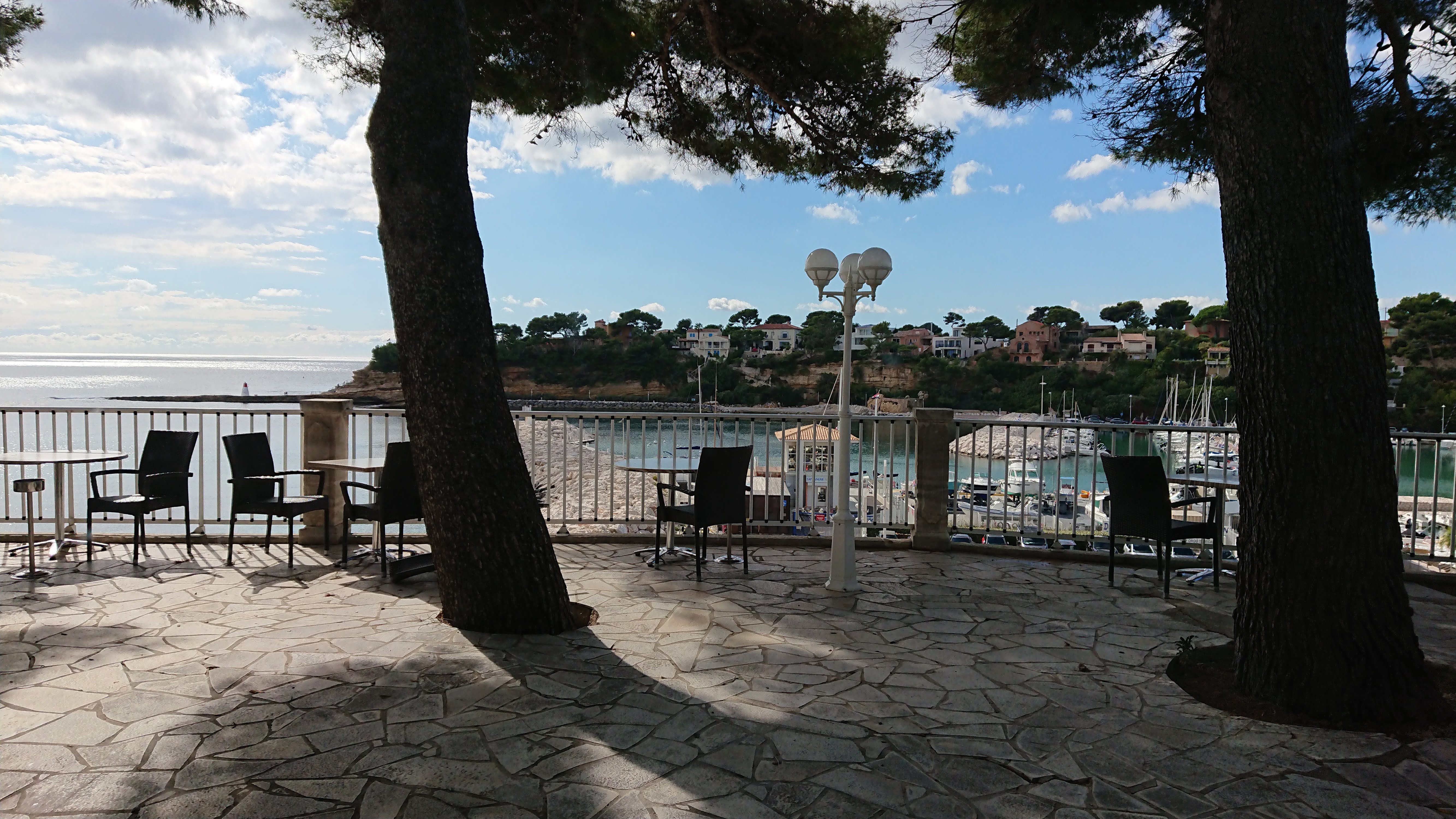 Vue toujours magnifique sur le port et la mer. Aujourd'hui, formule déjeuner moins bonne que d'habitude ... A suivre.