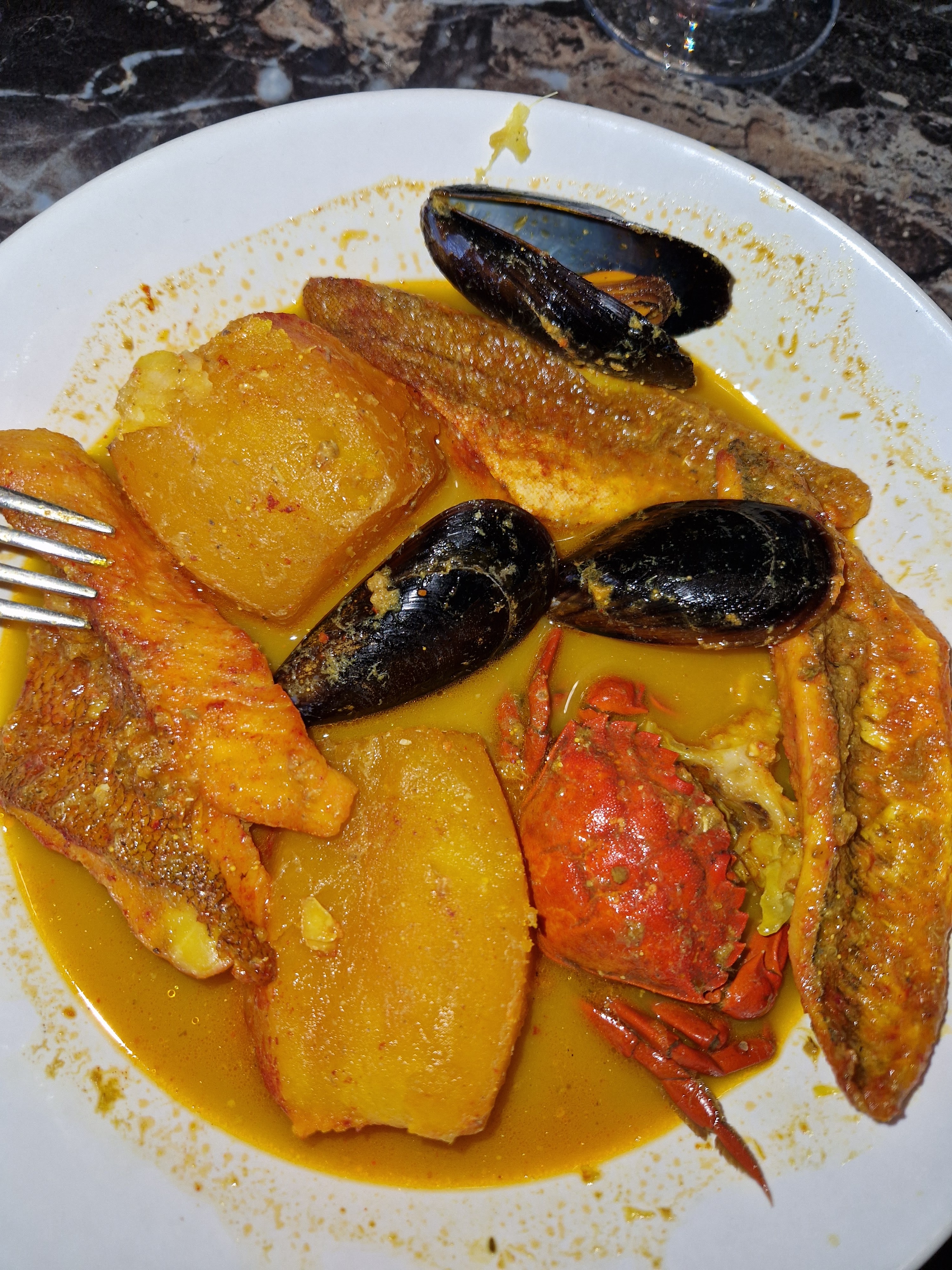 Honteux. Piège à touriste. Le parking est pratique, la vue sur le port est sympa, l accueil est chaleureux et c est tout. Les prix sont exorbitants par rapport à la qualité des plats. Des la première bouchée on cherche le sel et le poivre pour améliorer. C est fade de chez fade. On se demande où est le poisson dans la soupe. Une quantité minimaliste sans aucun goût. En ces temps de chaleur il fallu pleurer à 3 reprises de l eau pour obtenir 2 carafes d eau pour 4 pour tout le repas... Fuyez pauvre fou !!!