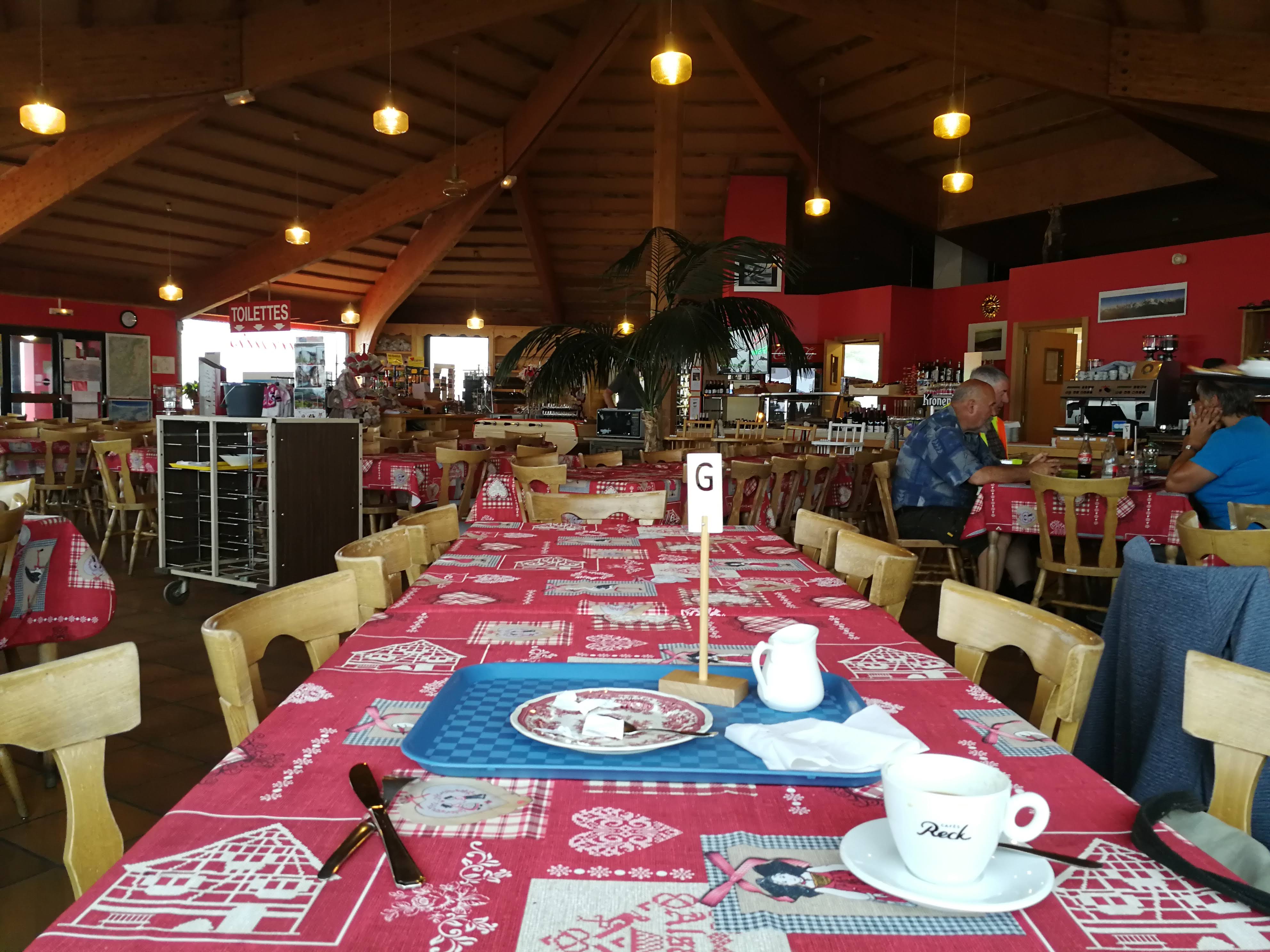 Restaurant self avec service plateau comme à la cantine mais très bon repas pour le prix. Personnels agréables et restaurant très propre. Point faible pour le bruit vu que le col et le parking sont à proximité (pire avec la livraison pendant le repas par un camion en marche arrière juste à coté)