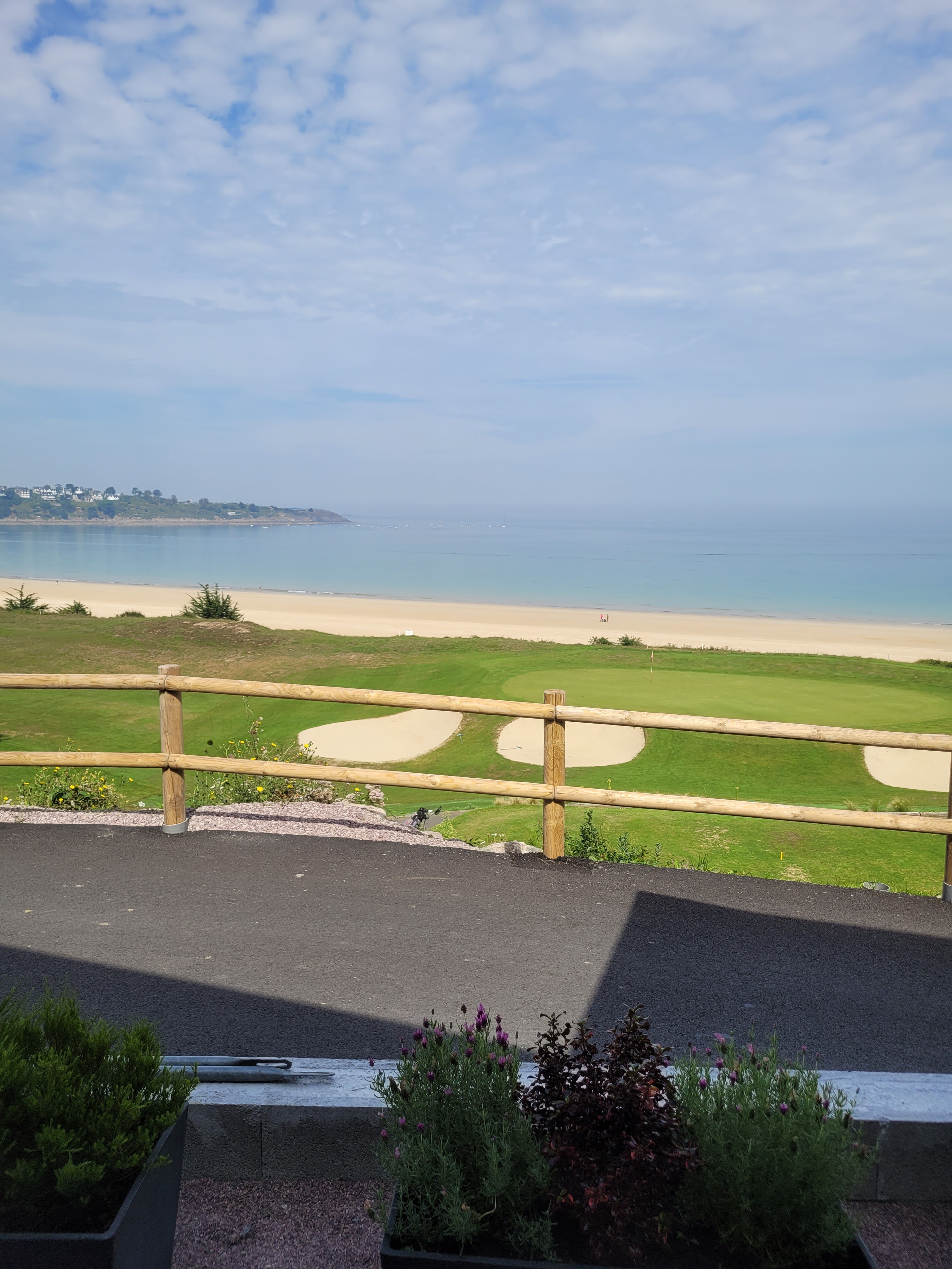 Bon restaurant avec vue sur la plage et une partie du parcours de golf !
