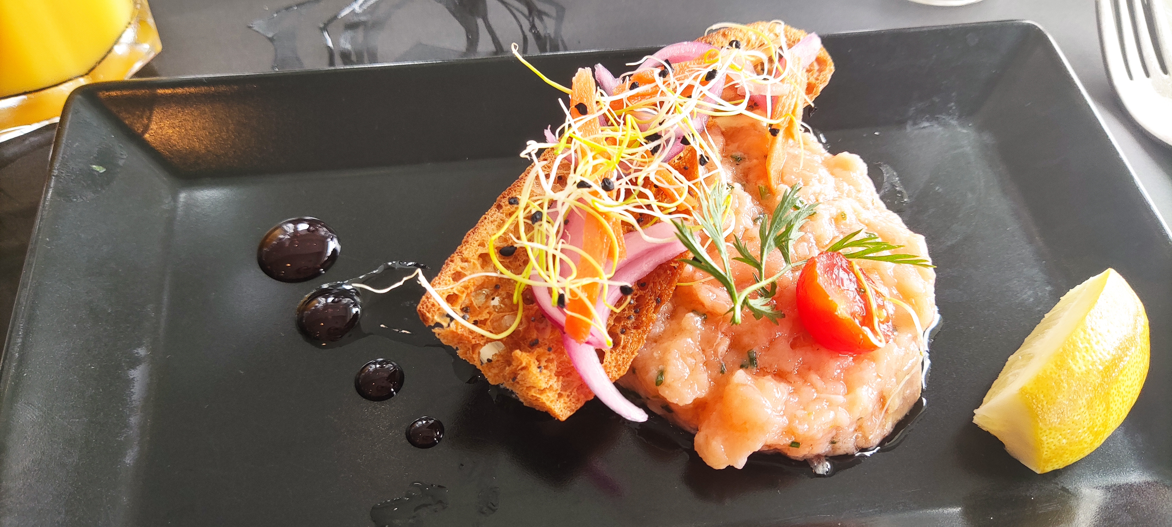 Très très bon restaurant où nous avons passé un super moment. Un bémol dommage qu'il n'y ait pas de VRAIS cocktail sans alcool au lieu de servir un simple jus de fruits sur un peu de grenadine. Nous espérons en avoir en septembre. Autrement c'est génial cuisune, service et personnel sans oublier la vue.