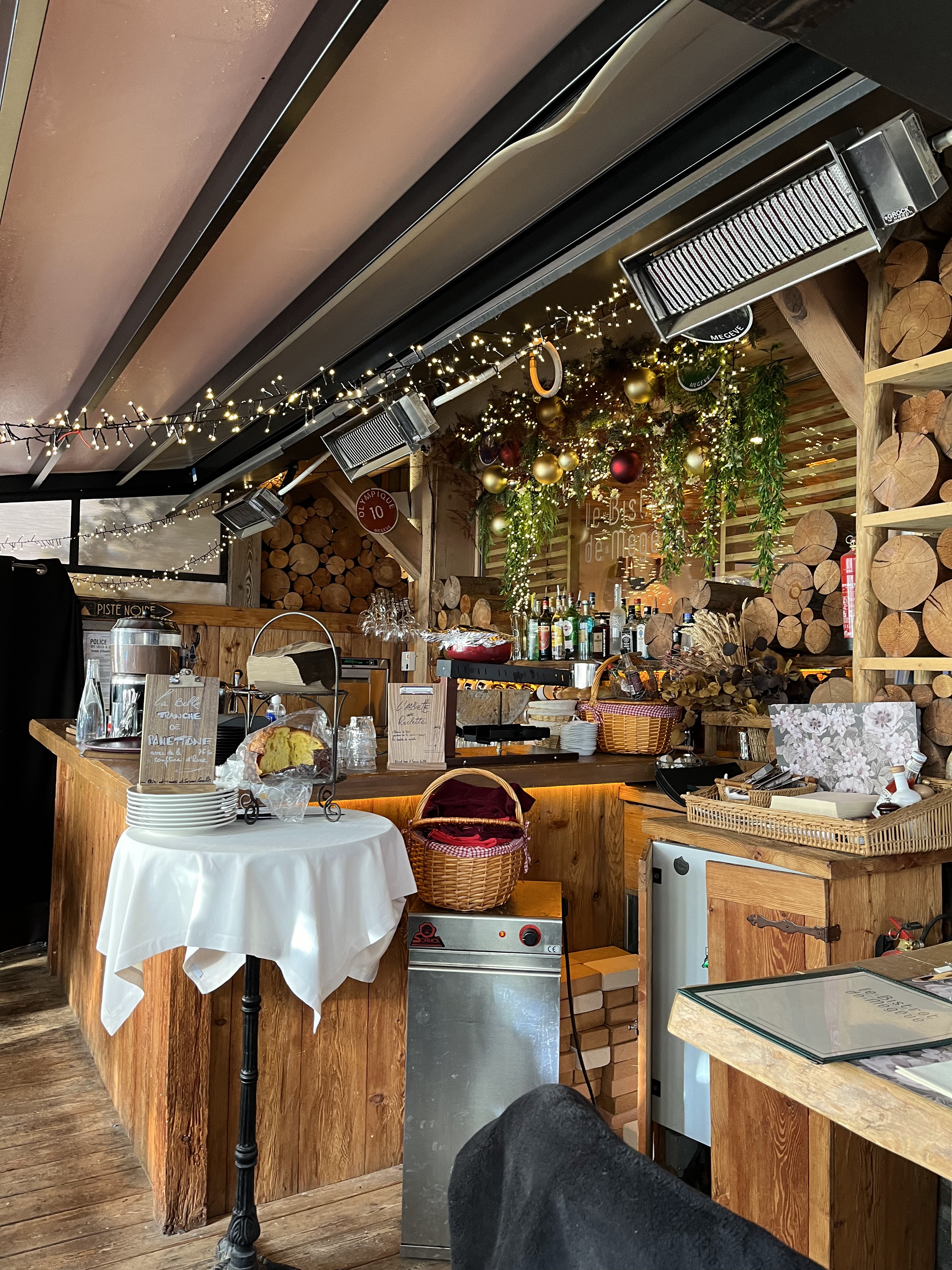 La nouvelle terrasse couverte est tres reussi. Ambiance a la fois chalheureuse et festive. Par contre 11 euros le verre de vin.... c'est Megève, mais quand même !