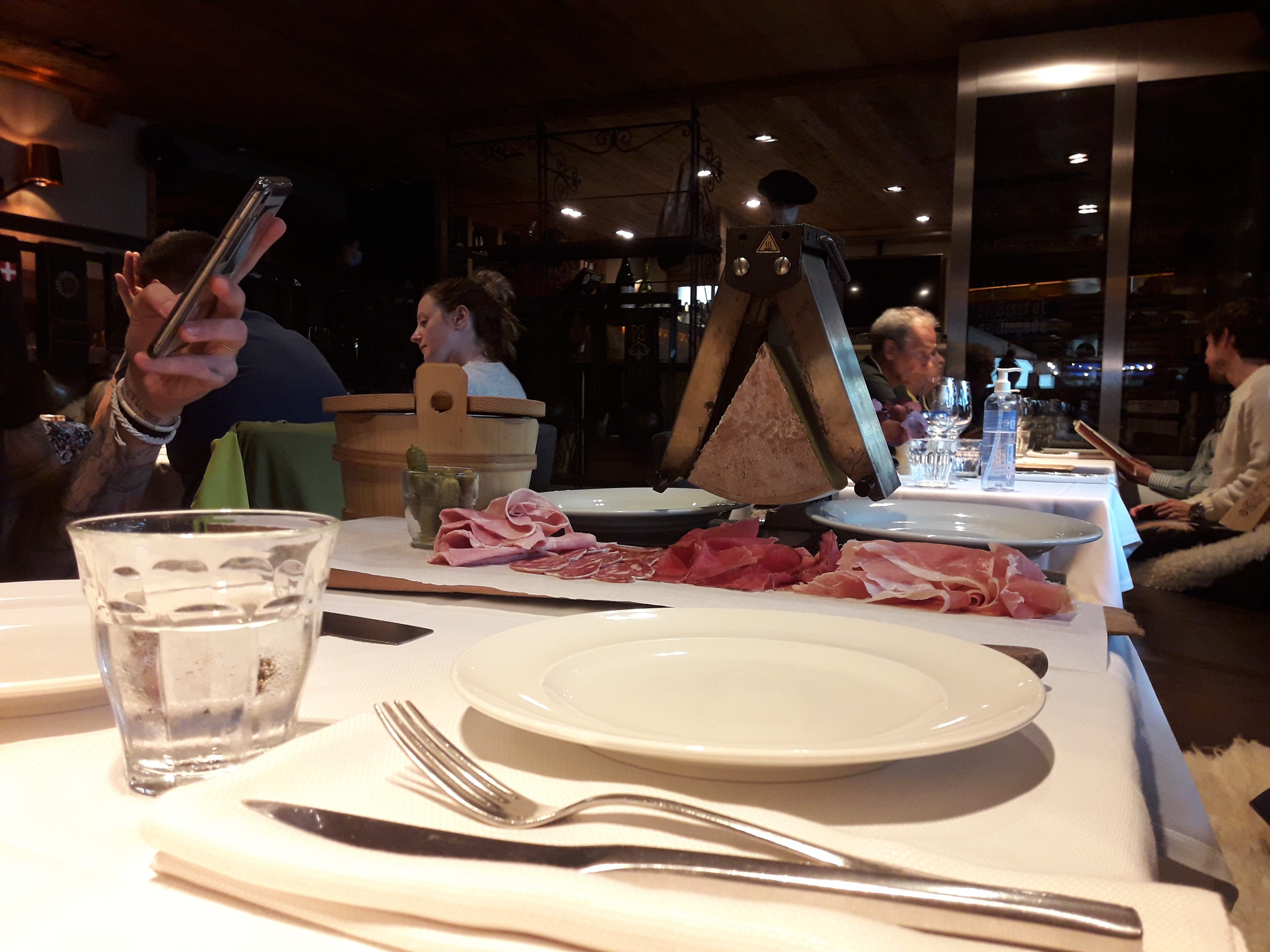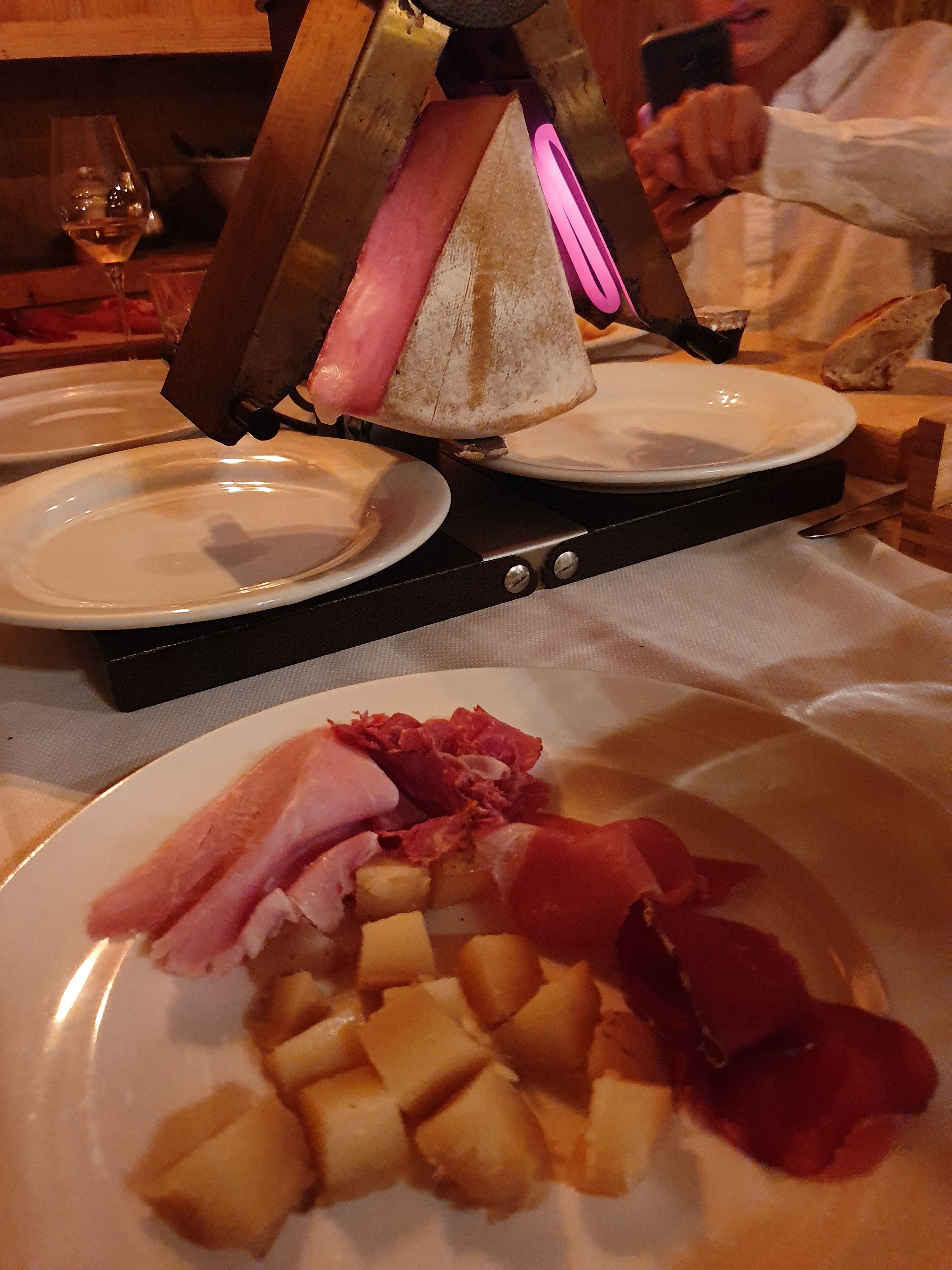 Raclette ! Tout était excellent !! De la charcuterie, aux pommes de terre, à la salade et le fromage ! Il y a du monde mais vu le délice c’est normal :)