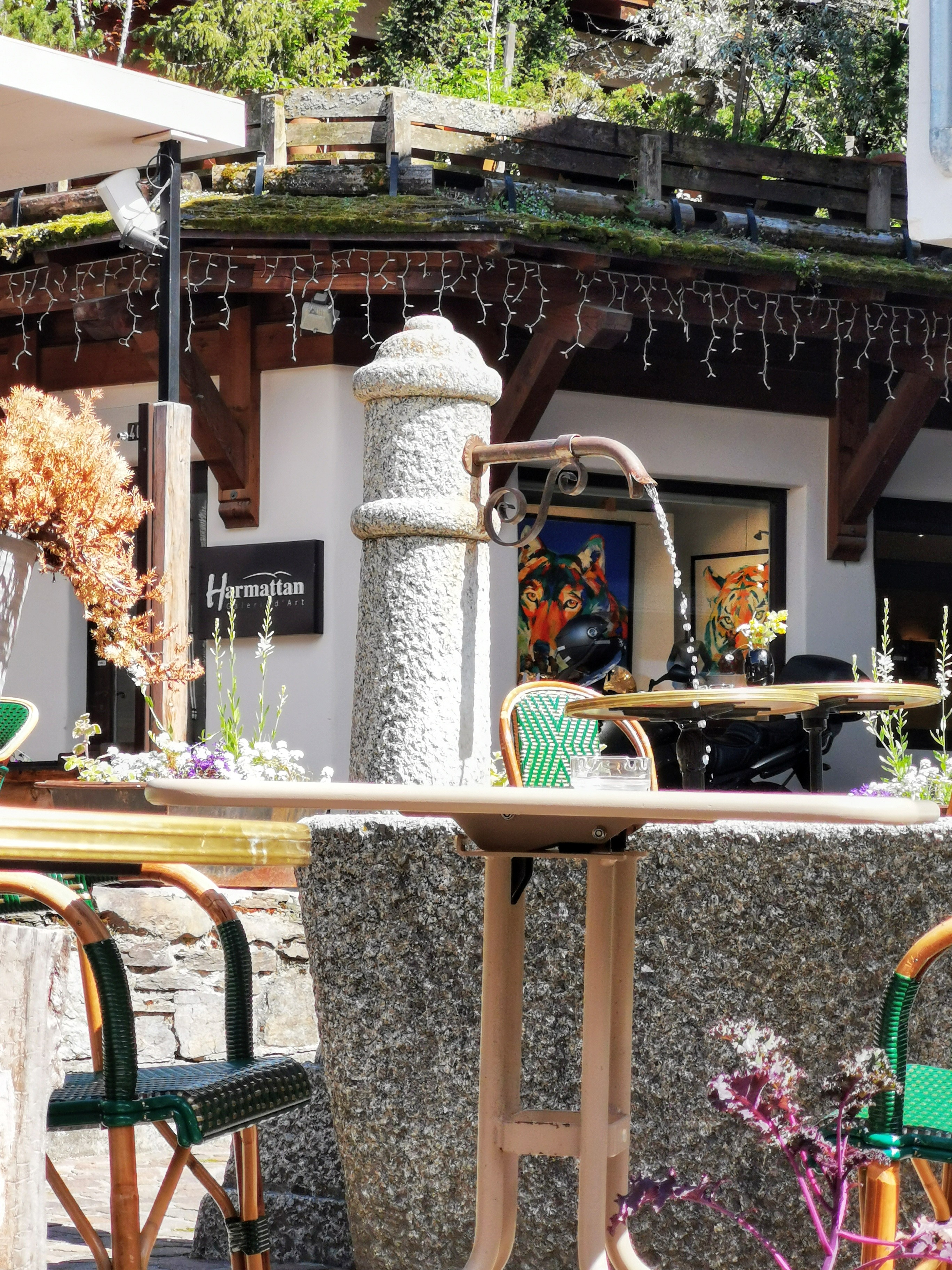 Bistrot situé en plein centre-ville de megeve Une bonne crêpe au sucre accompagnée d’un bon thé noir pris sur la terrasse en plein soleil, Parfait pour terminer la balade Un des rares établissements ouverts au mois d’octobre